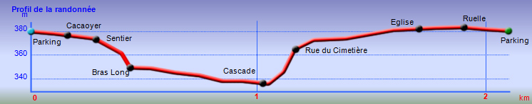 La randonnée commence par une courte portion de la Rue Fortuné Hoareau pour rejoindre la rue Julius Hoarau où se trouve la première pancarte, en face d'un cacaoyer, toujours très fourni en cabosses (Photo 1). Prendre la rue étroite qui descend vers la ravine entre de beaux jardins fleuris (Photo 2). Marcher jusqu'à un panneau présentant les sentiers de la ville et suivre la direction du Bassin Sassa (photo 3). Poursuivre sur un chemin non goudronné entre les cases (Photo 4). Une dernière ruelle se termine soudainement en sentier terreux cheminant entre chocas et poivriers (Photo 5). La pente est tout d'abord faible entre terre et roches (Photo 6). Quelques lacets ou hautes marches ralentissent peu mais demandent un peu d'attention (Photo 7). On parvient à quelques bananiers poussant au plus près de la ravine (Photo 8). Entamer alors la descente de la rivière en cherchant toujours le meilleur passage sur les berges ou dans le lit du Bras Long. Les passages sur les berges sont les plus rares (Photo 9). Le fond de la ravine est jonché de petits et gros cailloux. Quelques touffes de bambous poussent sur les berges (Photo 10). De petits bassins sans intérêt ne se prêtent pas à la baignade (Photo 11). Une petite grotte sur la droite pourrait faire peur la nuit en raison de sa forme particulière (Photo 12). Remarquer, en face, l'envahissement de la liane qui recouvre tous les arbres et les fera mourir doucement (Photo 13). La descente s'effectue parfois dans de hautes herbes qui ont envahi les berges et parfois le lit du Bras Long (Photo 14). Comme il y a peu de courant, les lentilles d'eau envahissent les petits bassins d'eau stagnante (Photo 15). Quelques touffes de papyrus tentent de recouvrir certaines portions de la ravine (Photo 17). Un sentier bien visible longe parfois la ravine (Photo 18) puis bifurque tout d'un coup sur la gauche pour suivre un large chemin sous les arbres (Photo 19). On rencontre plus loin, juste avant la montée au village, une bifurcation en même temps qu'on entend la petite chute d'eau tomber dans le bassin. Le sentier comporte quelques marches, des racines et des cailloux (Photo 20). L'accès à la chute d'eau est facile en longeant une courte partie de la ravine (Photo 21). On peut apercevoir facilement la petite chute d'eau en s'approchent du bord rocheux (Photo 22). Rejoindre le bassin Sassa est presque impossible sans danger et rares sont ceux qui doivent s'y tremper. La balade se poursuit en retrouvant le sentier 20 mètres plus haut et en obliquant vers la droite. Une petite sente dans la végétation permet de contourner le bassin en le dominant pour en avoir des vues différentes à travers les jamrosats (Photo 23). Reprendre le sentier qui grimpe fortement entre manguiers et letchis ou bananiers et marcher jusqu'à la rue du cimetière (Photo 24). Des travaux de maçonnerie ont été aménagés pour terminer la jonction avec la rue et la sortie s'effectue désormais par un escalier (Photo 25). Remonter la rue du Cimetière jusqu'à la Rue Hubert Delisle. La balade en ville, comme toujours, permet de repérer des jardins ou cases, l'église (Photo 26) ou des sculptures. Une ruelle part sur la gauche, longe l'arboretum et se termine aux alentours de l'office du tourisme (Photo 27). Ne pas hésiter à demander d'autres idées de balades dans le charmant village de l'Entre Deux en pénétrant dans l'office de tourisme, facile à reconnaitre à sa couleur verte (Photo 28).