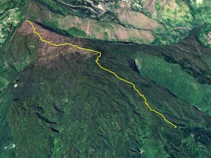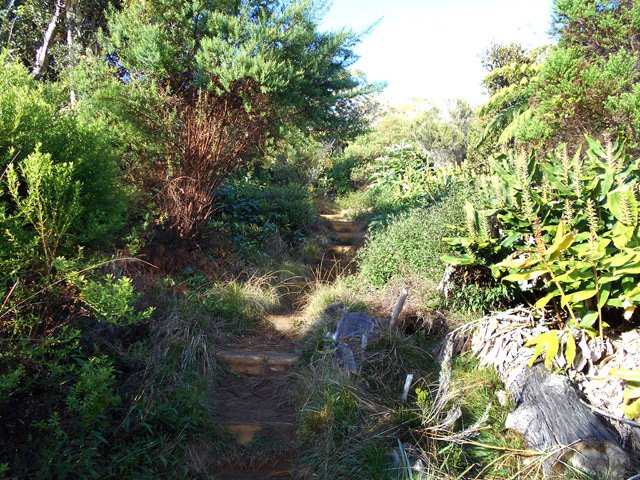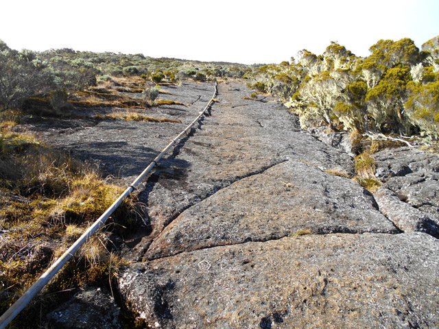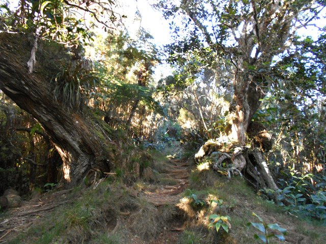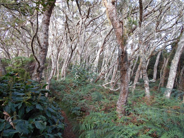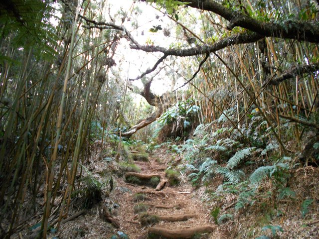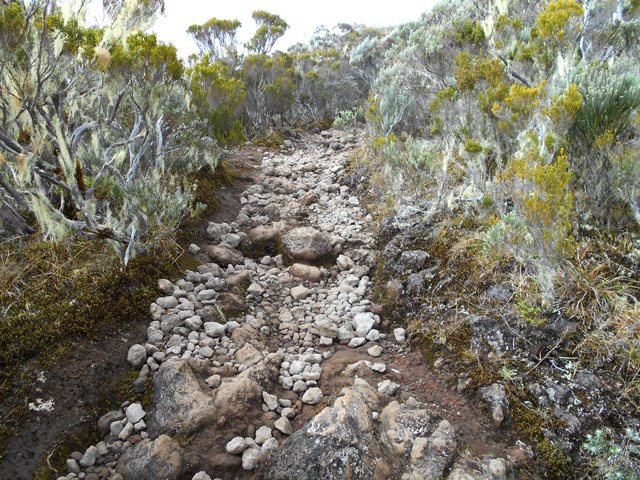Montée boueuse et glissante. Chemin assez répétitif jusqu'au gîte, à partir duquel la végétation et le sol changent. Il y a du brouillard et le chemin paraît tout de même long jusqu'au sommet.