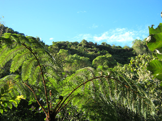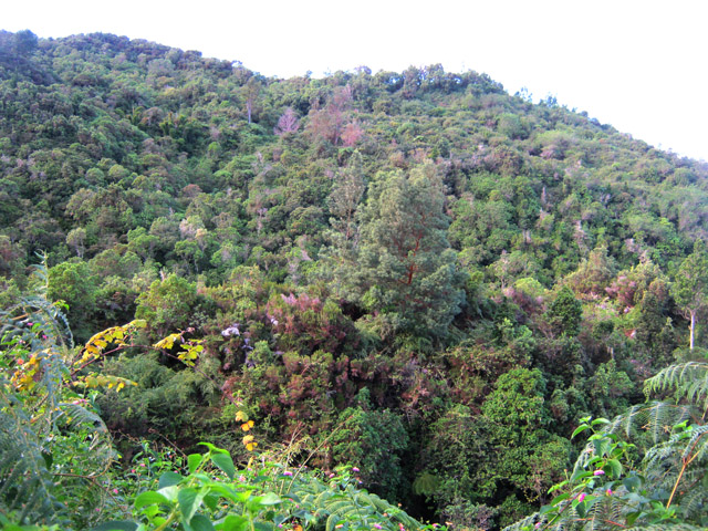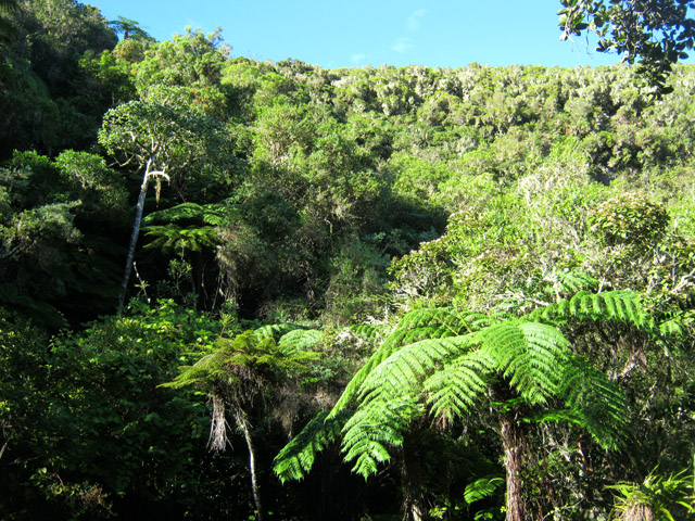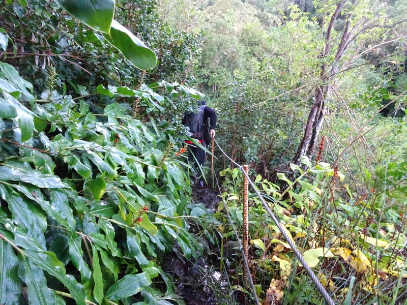 Il est très facile de trouver 10 randonnées dans la région du Tévelave dont l’unique but est de découvrir une source qui a été captée ou qui reste encore sauvage. C’est en tonnes et en kilomètres que l’on doit mieux comprendre l’importance du réseau de collecte dans cette commune très humide de l’Ouest de l'île, mais où trouver ces chiffres ? Cette randonnée ne déroge pas à la règle de l’impossibilité de se perdre quand on rencontre autant de tuyaux sur son chemin. Hélas, toute cette eau collectée diminue grandement le bruit des petites chutes ! L’autre avantage de ces sentiers des sources est qu’ils ne sont jamais totalement oubliés car entretenus régulièrement pour maintenir en état les tuyauteries ou nettoyer les crépines. Hormis le plaisir de se promener dans des forêts de bois de couleurs de plus en plus envahies de longoses, ce genre de circuit ne laisse aucun souvenir impérissable.