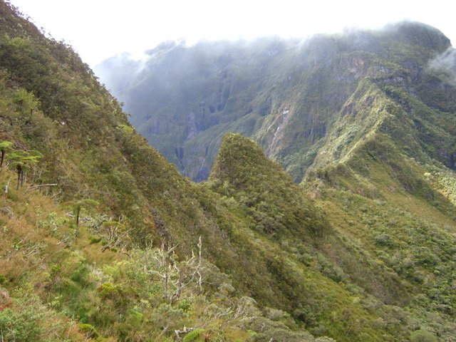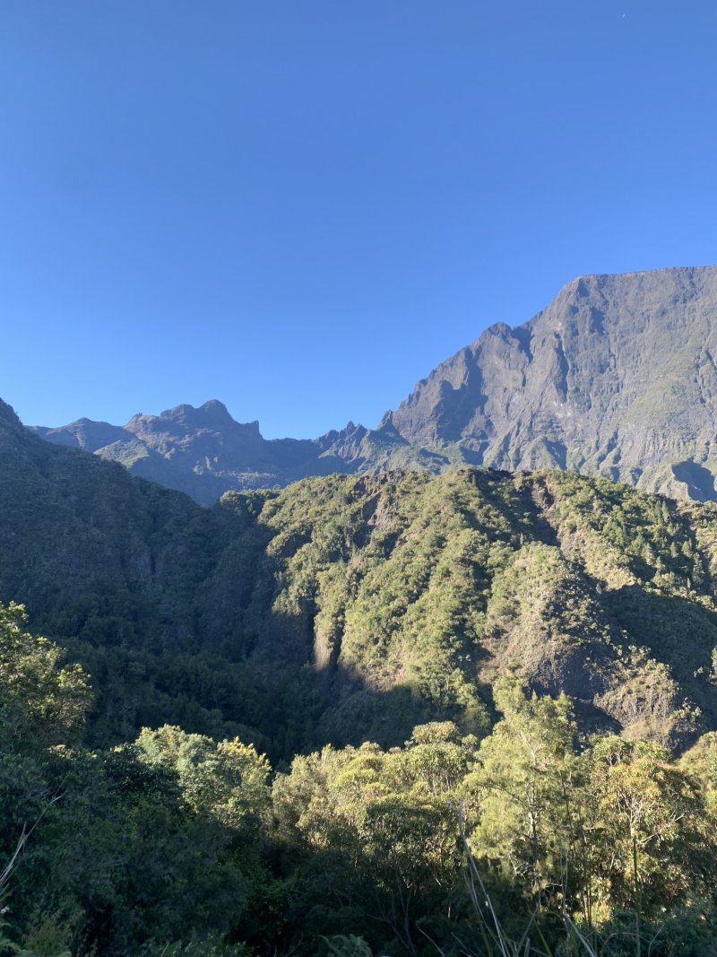 Pour rallonger un peu je suis partie de la ravine Piton Marmite (près du sentier Scout), puis passage par Plaine des Merles et col de Fourche. Je crois que c'est la première fois que je vois l'accès au Kerval aussi propre et dégagé. Les jouvences sont sèches et ne masquent pas le sentier. Les cairns sont suffisants. Je suis arrivée vers 11 h et j'étais seule ! Les gens qui bivouaquaient étaient déjà redescendus. En haut, très peu d'eau et les habituelles vaches qui sont restées assez loin de moi. Un endroit magique...
