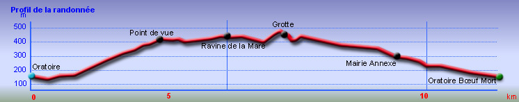 Se rendre à la Possession puis sur la Rue Leconte Delisle - Se diriger vers la Résidence de la Grande Montagne, un quartier de la Possession, par le Chemin du Bœuf Mort - Rouler jusqu'au pont et garer le véhicule près du grand oratoire rouge situé à gauche de la route - Rejoindre le lotissement, le traverser et emprunter la piste qui se situe après les dernières maisons - Suivre le chemin puis le sentier pavé et enfin le sentier normal - Partir à droite au croisement des sentiers et descendre vers le Bras Marie - Continuer par un long contournement puis franchir le gué sur la Ravine la Mare - Poursuivre dans la montée jusqu'au point de vue sur le Port - Descendre vers la grotte de la Kalla puis passer le gué rocheux de la Ravine à Marquet - Remonter vers le Chemin Ratinaud et partir à droite vers la Possession - Suivre la piste bétonnée qui rejoint la route de Sainte Thérèse - Tourner à droite et longer la route jusqu'au prochain arrêt de bus - Prendre la rue à gauche sur 350 m et suivre le sentier qui mène directement à la Mairie Annexe de Sainte Thérèse - Reprendre la route jusqu'à l'église aux toits bleus puis tourner à droite sur le Chemin du Bœuf Mort - Suivre cette longue rue qui qui traverse les lotissements jusqu'au véhicule.