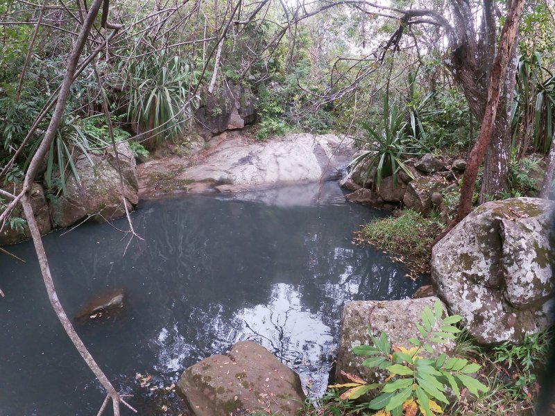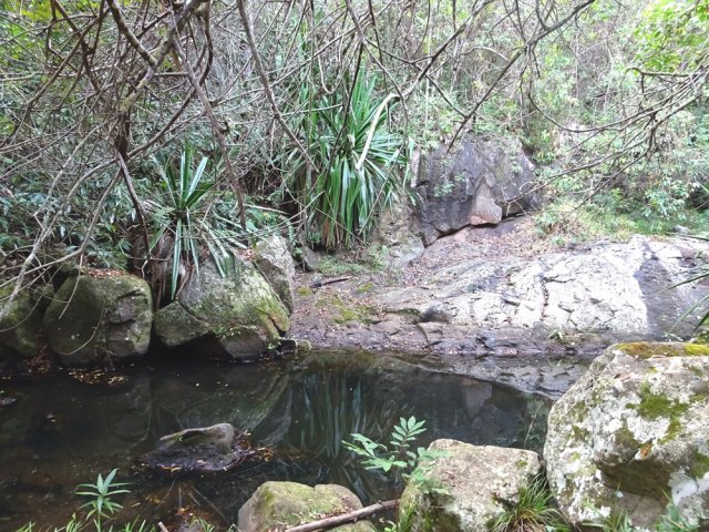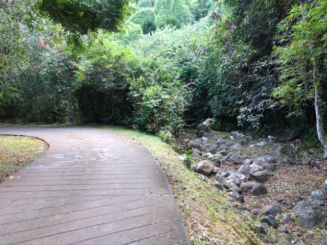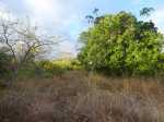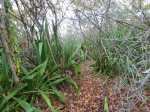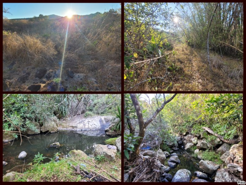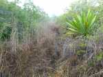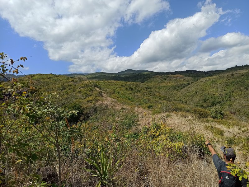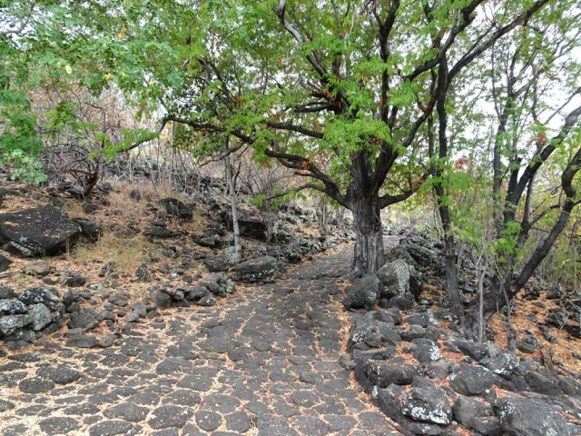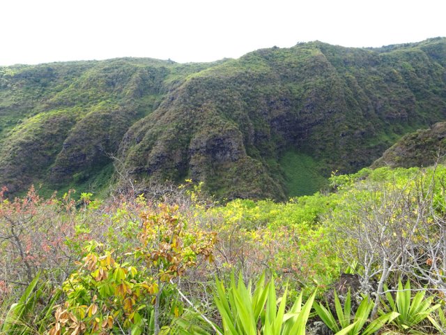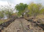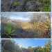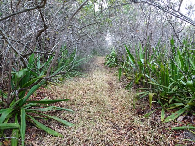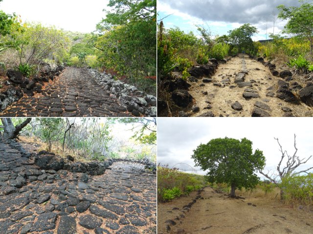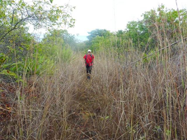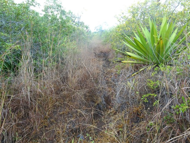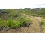 La randonnée débute au plus près du départ du Chemin des Anglais où les places sont souvent rares pour stationner. Préférer la Rue Raymond Mondon ou la Route de la Montagne. La montée est immédiate sans aucun échauffement sur une large piste pavée qui effectue de nombreux lacets sous les tamarins (Photo 1). Il faut passer une douzaine de ces lacets avant de parvenir au plateau pour emprunter de larges tronçons pavés de très bonne qualité (Photo 2). En se retournant, on bénéficie de beaux points de vue sur la ville de la Possession et celle du Port (Photo 3). Marcher 500 mètres avant de commencer les recherches du sentier remontant à la Ravine à Malheur. Aucun repère ne permet de s'assurer du bon endroit si ce n'est un départ de trace dans les herbes ou quelques vieilles rubalises brûlées par le soleil. Il faut un œil averti pour se convaincre du bon passage (Photo 4). Viser un tamarin des bas assez caractéristique car il est le seul touffu de la région (Photo 5). S'en approcher et le contourner par la droite, suivre les bribes de sentier recouvertes d'herbe ou la trace du GPS pour rejoindre en quelques minutes le début correct du sentier qui ressemble surtout à une petite ravine caillouteuse (Photo 6). A partir du moment où l'on rencontre cette trace, il n'y aura jamais plus à se poser de question car le passage est bien marqué à travers les chocas et les faux poivriers qui dépassent rarement les trois mètres de haut (Photo 7). On devine même par endroits de larges passages donnant à penser qu'il existait jadis une piste (Photo 8). Vers le village, les fougères se multiplient ainsi que les chocas (Photo 9). Les poules et pintades de l'élevage qu'on devine au bruit des volailles confirme la fin proche de la montée. On arrive à une grosse touffe de bambous. Le sentier se poursuit tout droit tandis qu’un autre part sur la gauche dans un pierrier. Emprunter ce dernier, traverser des zones très encombrées de chocas (Photo 10) et de grandes surfaces de fougères. Les curieux emprunteront le sentier partant sur la gauche pour rejoindre la Ravine à Malheur. Le sentier est acrobatique mais court. Il se termine à un bassin mais ne semble pas se poursuivre dans les falaises de l'autre rive (Photo 11). Après avoir fait demi-tour, reprendre le sentier principal qui se termine à un champ de maïs près d'une habitation. Le passage est libre à travers le lopin et rejoint immédiatement une piste herbeuse qui monte en direction de la RD41 (Photo 13). On assiste de loin au ballet des pétroliers et porte-containers qui attendent leur tour de passage au port (Photo 12). A la Route de la Montagne, prendre à gauche et marcher 250 mètres avant de partir à gauche sur le Chemin de la Petite Chaloupe en direction du terrain de sport et d'entraînement des motards (Photo 14). Passer entre le terrain de sport et la piste tout terrain (Photo 15). Repérer parmi les nombreux croisements, celui qui semble le plus naturel pour partir vers l'est. Il est large, bordé de fougères et presque plat (Photo 16). Il effectue une large boucle afin de se rapprocher de la vallée de la Grande Chaloupe (Photo 17) en traversant les zones de terres rouges si communes dans cette région de l'île (Photo 18). La piste DFCI est impossible à manquer malgré le nombre de circuits qui se recoupent partout. Après la première montée de début de boucle, d'abord aléatoire, puis celle plus sportive avant d'emprunter le dernier sentier cheminant à plat, cette descente s'avère une promenade de santé (Photo 19). La piste descend constamment en direction de l'océan qu'on a toujours sous les yeux tout comme les vallées de chaque côté (Photo 20). On peut emprunter des raccourcis entre les lacets mais ils demandent plus d'attention. Le plateau, sans doute cultivé jadis, est désormais totalement recouvert de plantes invasives (Photo 21). Partout, de chaque côté de la piste, sont plantées des espèces végétales afin de reboiser les collines. On frôle au passage quelques réserves d'eau protégées par des planches (Photo 22). A tout moment, on bénéficie sur la droite de beaux points de vue sur la Ravine de la Grande Chaloupe (Photo 23), plus impressionnants que ceux de l'autre côté de l'arête. De fréquents défrichages permettent aux nouvelles plantes de tenter leur chance mais on en rencontre, hélas, de nombreuses desséchées dans leur grillage de protection. Une dernière citerne se situe en fin de piste d'où l'on a une vue globale sur ce qui vient d'être parcouru (Photo 24). Elle est aussitôt remplacée par un sentier étroit mais facile à suivre dans les arbustes et hautes herbes (Photo 25). La marche est rapide et l'on entend de loin les rires et discussions des nombreux marcheurs empruntant le Chemin Crémont que l'on rejoint au plus près du point de vue sur la Grande Chaloupe (Photo 26). Après une petit coup d’œil sur ce hameau isolé et sur les travaux de la nouvelle route, prendre à gauche et partir en direction de la Possession. Le retour s'effectue en totalité sur ce classique de la région Nord en sautant de pierre en pierre. Certaines portions sont en très bon état, d'autres, plus herbeuses doivent être régulièrement tondues, d'autres hélas se déchaussent inexorablement (Photo 27). Il ne reste parfois que la bande de pierres plates au milieu de la chaussée (Photo 28). Quelques fortes descentes pour franchir des ravines sont suivies de rudes montées mais on parvient assez rapidement à la Possession, fin de cette boucle.