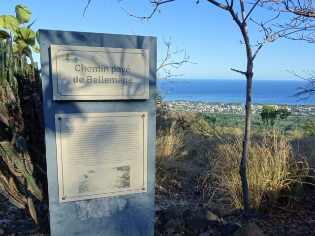 Voici le plus beau chemin pavé de l'île, court, en forte pente mais tellement bien réhabilité ! On connait le Chemin des Anglais, le Chemin Crémont ou plusieurs sentiers pavés à Saint-Leu, mais celui-ci est une véritable pépite. Il débute au village de Bouillon sur le Tour des Roches pour rejoindre, près de 200 m plus haut, celui de Bellemène. Il est large, très bien entretenu et bordé de magnifiques tamarins. Les chèvres viennent paître sur ses abords. C'est bien sûr une très courte sortie mais qui ne peut pas laisser indifférent les amateurs d'ouvrages routiers des siècles précédents. Pas toujours inscrits sur les cartes, d'autres chemins partent de Bouillon pour rejoindre les villages du Tour des Roches ou ceux des hauts. A ne pas manquer et à combiner avec d'autres courtes sorties de cette zone (Bernica, Vital, Divon, etc). Merci à l'association Bellemène Pavé qui a remis en état cette belle portion reliant le Tour des Roches à Bellemène, lui redonnant l'aspect qu'elle avait à l'époque. C'est durant la décennie 1720 que le sentier qui reliait Saint-Paul à Bellemène fut transformé en route durant la gouvernance de Desforges-Boucher. La route était empruntée par les ouvriers agricoles qui travaillaient à la culture du café ou de la canne à sucre. On retrouve des vestiges d'autres chemins pavés dans la région ; certains ont été recouverts par l'urbanisation, notamment une longue portion de Crève Cœur à Bois Rouge, de l'autre côté de la Ravine Divon.