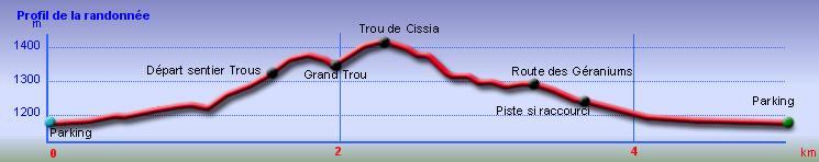 Le propriétaire des lieux s'inquiète de l'imprudence de certains randonneurs sur son terrain qui comporte le profond Trou de Cissia. Il interdit désormais le passage situé entre Grand Trou et le Trou de Cissia. Même si cet itinéraire passe par l'aire de décollage des parapentes qui doivent demander l'autorisation la veille d'un décollage, il est demandé de ne plus franchir les limites de Grand Trou et de poursuivre par le circuit officiel. Les explications demeurent sur la fiche mais cet écart, désormais supprimé de la carte, s'effectuera donc sous l'entière responsabilité des marcheurs. Voir les pointillés en noir sur la carte de la photo 28