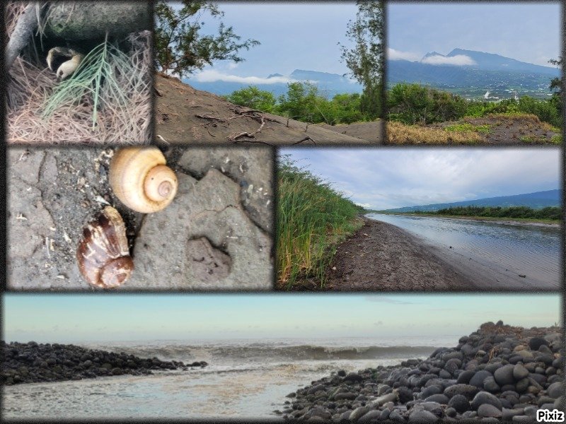 Tout en profitant du littoral marin et de sa mer légèrement agitée, j'ai pu aussi profiter de relief, (chaîne du Bois de Nèfles ) , et observer de petits animaux rares : un petit crabe fuyant sous un filaos, des escargots aquatiques que je n'avais jamais vu... (photo 3).