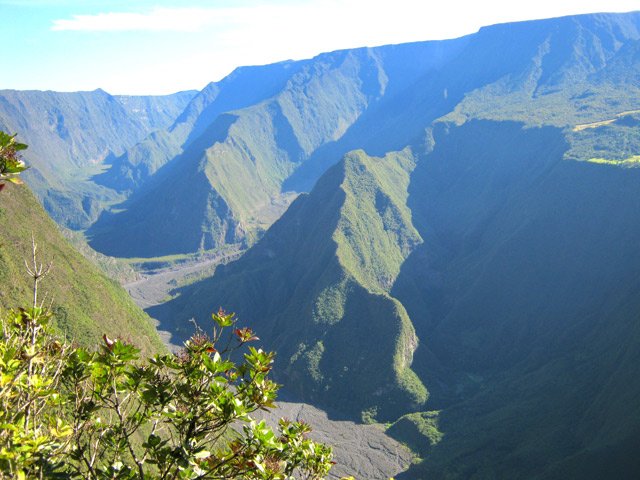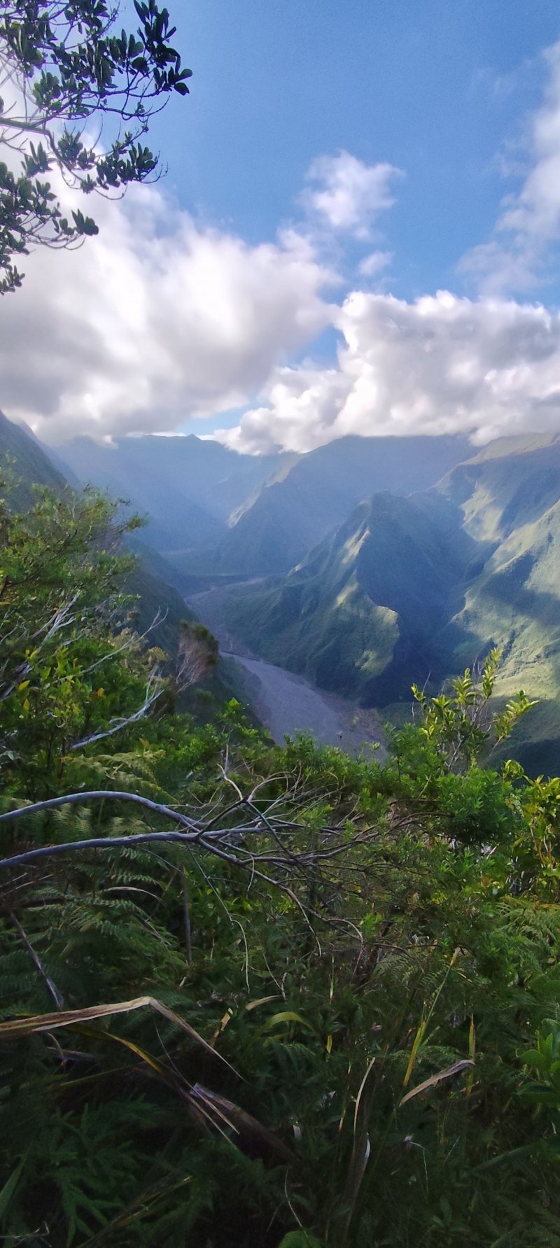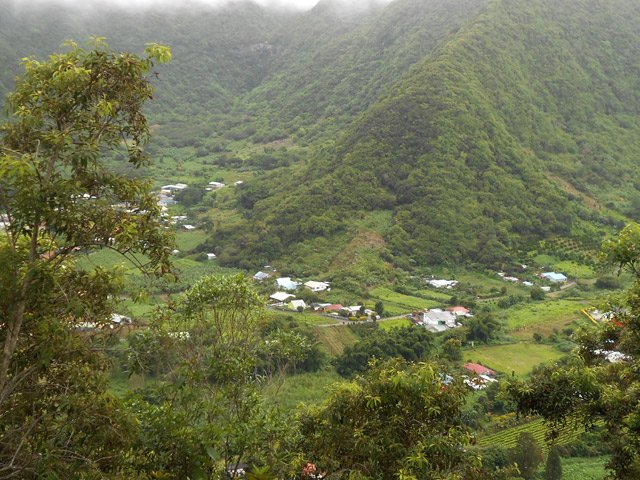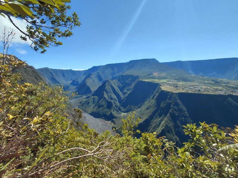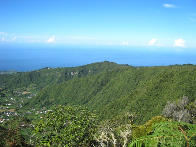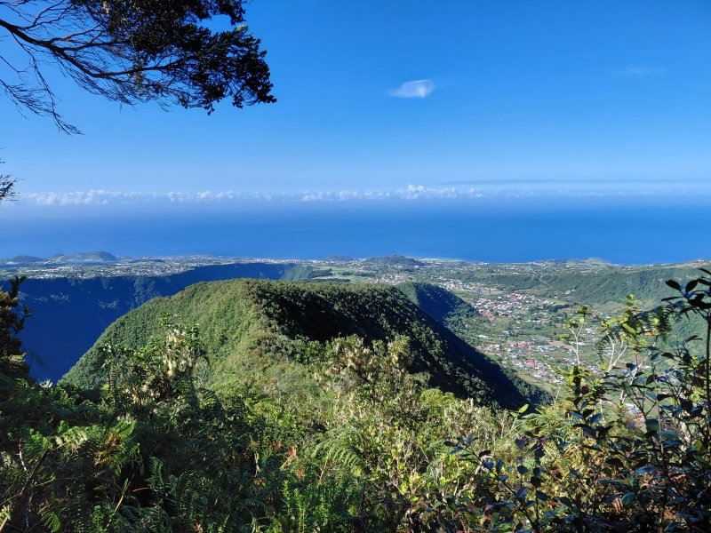 Faite dans le sens inverse et en prenant la route de Petite Plaine et chemin du Safran pour le départ de la montée. A priori, quelque soit le côté par lequel on commence, c'est raide. Le sentier est impeccable . Et quelle vue sur Grand Coude et la Rivière des Remparts ainsi que sur la Plaine des Grègues ! Merci la météo du jour qui a récompensé l'effort fourni !
