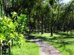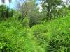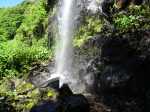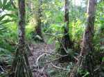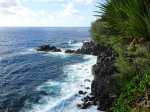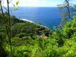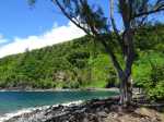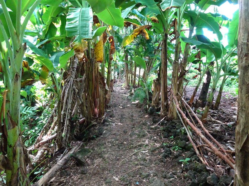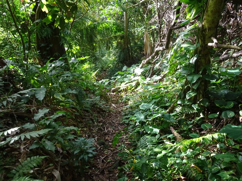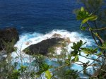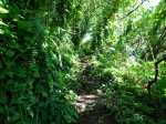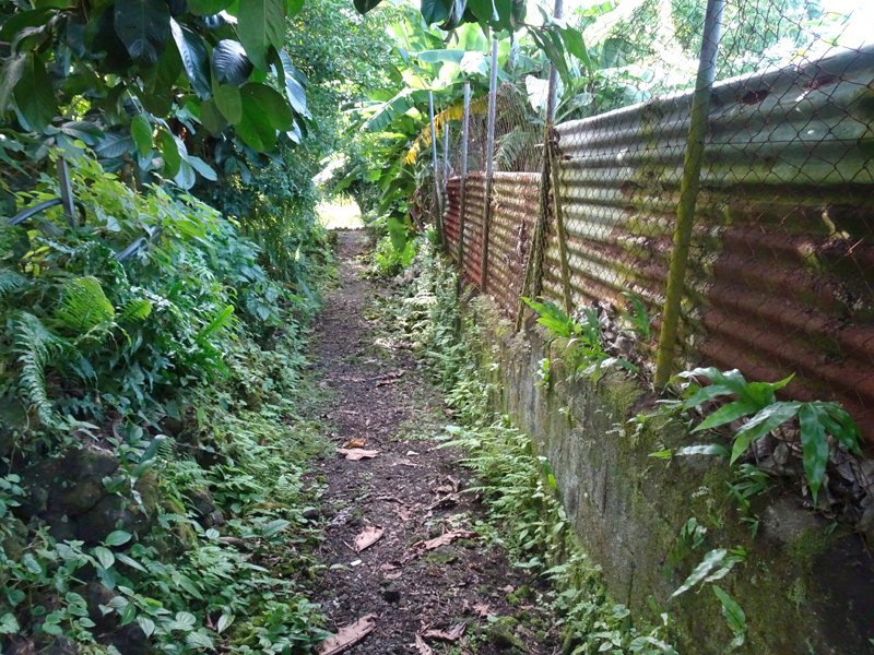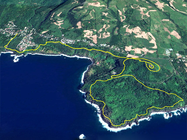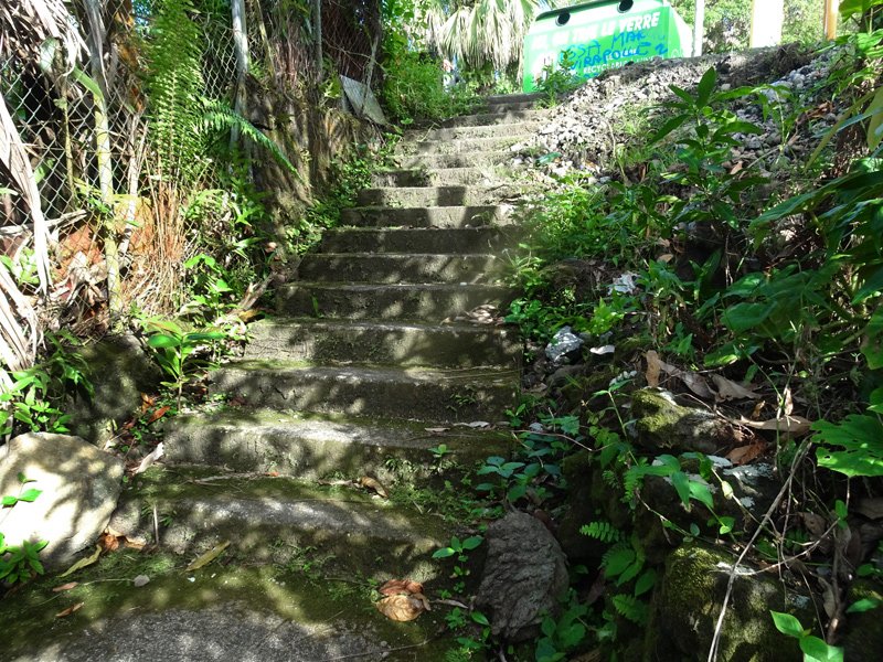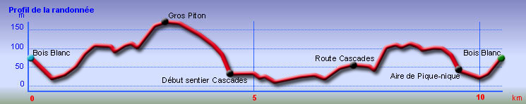 La randonnée débute au petit village de Bois Blanc près de l'arrêt principal de bus. Se rapprocher de l'arrêt et de la petite route en haricot. Le sentier débute juste là et rejoint la mer sur un terrain couvert de pierres de laves moussues et de feuilles de vacoas (Photo 1). Il arrive à un croisement de sentiers. Celui de droite mène en direction du Quai de l'Eglise. Prendre à gauche et traverser la Ravine de Bois Blanc sur un sol très humide et glissant. Poursuivre en longeant le littoral constamment arrosé par les vagues (Photo 2). Le sentier, assez large et ombragé sous les pandanus, passe entre les habitations et l'océan. Quelques bananiers indiquent la proximité du village (Photo 3). On rejoint très vite l'aire de repos et la cocoteraie de Bois Blanc où quelques kiosques (et les moustiques) attendent les pique-niqueurs (Photo 4). Traverser la cocoteraie et franchir plus loin la Ravine Ferdinand puis attaquer la courte mais forte pente qui rejoint en quelques lacets et marches le bord du rempart (Photo 5). Il est bordé de vanille poussant sur des pieds de pandanus (Photo 6). Beaucoup de fougères et de bambous occupent les bords du sentier (Photo 7). Sur la droite, dans les trouées, on devine souvent l'Anse des Cascades qu'on rejoindra après une visite au Gros Piton (Photo 9). Prendre à gauche au prochain croisement de sentier et rejoindre les cannes à sucre poussant le long de la RN2 (Photo 10). Un petit sentier, bien indiqué par un poteau de l'ONF, part en direction du sommet dans les herbes, les goyaviers et les poivriers (Photo 11). On rejoint très vite le sommet d'où l'on bénéficie de superbes panoramas sur l'océan (Photo 12). Un long belvédère attend les curieux, amateurs de splendides panoramas (Photo 13). Un panneau explique que ce piton était le point d'observation des éruptions depuis des générations. Une table d'orientation sommaire donne la position de quelques sommets (Photo 14). Après s'être régalés du paysage, partir par la piste et effectuer le tour complet du sommet par la piste. On contourne ainsi l'antenne relais qui domine le piton (Photo 15). La piste est courte et il serait dommage de ne pas l'utiliser, ne serait-ce que pour profiter différemment des panoramas verdoyants (Photo 16). Après cette courte boucle qui ne prend que quelques minutes, reprendre le sentier et poursuivre celui rencontré au croisement. Il est large et descend par quelques lacets vers la route de l'Anse des Cascades (Photo 17). Une fois à la route, partir un peu à gauche et emprunter le sentier qui descend à la rencontre de celui de Sainte-Rose par de très nombreuses marches. La visite de l'anse en partant sur la droite ne prendra qu'un quart d'heure si on ne connait pas cet endroit charmant. Un raccourci permet de descendre plus vite mais la route est courte. On arrive près d'une cocoteraie sur la gauche comportant des dizaines d'arbres dont les grands troncs semblent mieux résister aux cyclones (Photo 18). C'est sans doute dû à la souplesse du tronc et à l'énorme pied qui le maintient. Une piste cimentée traverse toute la zone afin de permettre aux fauteuils roulants de passer plus facilement (Photo 19). Il ne faut que quelques minutes pour rejoindre une des cascades en utilisant ces pistes (Photo 20). Ne pas manquer de se rapprocher de la plage de galets de l'anse bordée de filaos (Photo 22). Une fois la visite terminée, repartir sur le sentier littoral qui débute par une belle pente sous les vacoas afin de contourner une falaise basaltique (Photo 23). De là-haut, on domine la mer et les roches battues par les vagues (Photo 24). Puis le sentier ondule au gré de la côte et redescend au plus près de l'océan du côté de la Pointe des Bambous où il est possible de se rapprocher au plus près pour y trouver une modeste arche dans le basalte (Photo 25). On aperçoit déjà la coulée de 1977 du côté de Piton Ste-Rose mais il faut se préparer à bifurquer (Photo 26). Le sentier est très agréable dans les fougères sur un sol souvent caillouteux (Photo 27). I faut pourtant le quitter en empruntant le très discret sentier du Quai de Sardine qui repart à gauche en direction du Gros Piton. Quand il est bien entretenu, il n'est pas très large mais est agréable à utiliser (Photo 28). On rejoint en marchant presque à plat la petite route de l'Anse des Cascades. A moins de revenir à l'Anse des Cascades pour un repas au restaurant ou un pique-nique sous les cocotiers, reprendre le sentier pris à l'aller et rejoindre Bois Blanc par le même itinéraire.
