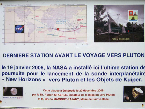 Une plaque commémorative est installée en haut du Gros Piton. En janvier 2006 la NASA a installé au Gros Piton ou Piton Cascades une station de poursuite pour le lancement de la sonde interplanétaire New Horizon en direction de Pluton et des objets de Kuiper. Même aux vitesses inimaginables de cet engin, il lui faudra plusieurs années pour effectuer ses études et il faudra encore attendre afin d'en obtenir des résultats exploitables. Cette station permettait de suivre l'engin durant ses premières rotations avant le grand voyage.