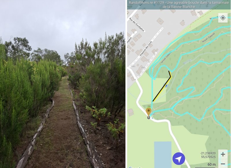 Photos 2 : un très court sentier stylé entre le parcours santé et la 1ère passerelle (en jaune et noir sur le screenshot).