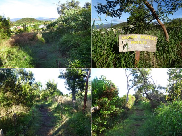 Les associations mettant en valeur certains sites de l'île sont rarement pérennes. Cela se ressent, comme ici, où les sentiers principaux sont auto-entretenus par les passages constants de randonneurs mais où d'autres sentiers, comme le Sentier Zabeille, sont totalement à l'abandon.