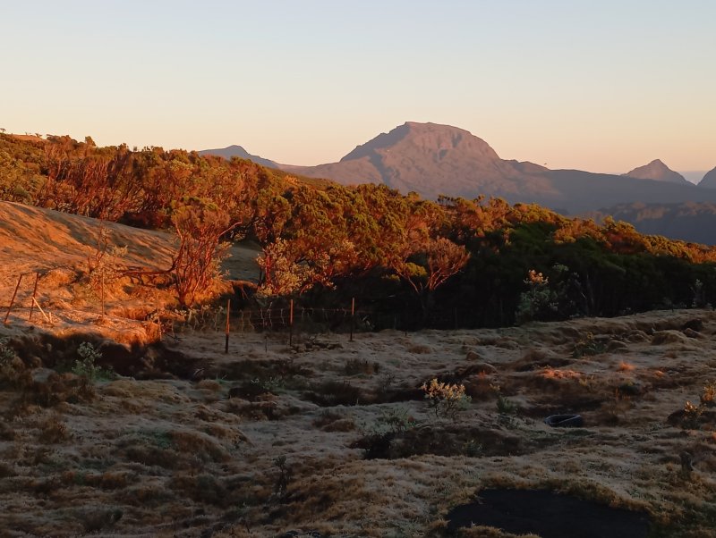 Parcours effectué dans la nuit pour voir le levé du soleil là-haut. Première partie boueuse, le sentier est bien balisé, l'ONF a fait un excellent travail. La végétation change au fil de la montée. La vue sur les sommets de l'île est grandiose et que dire du piton de l'eau !