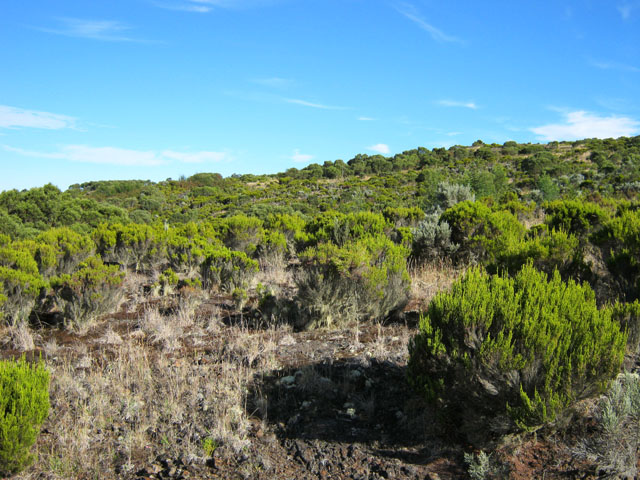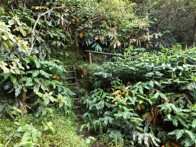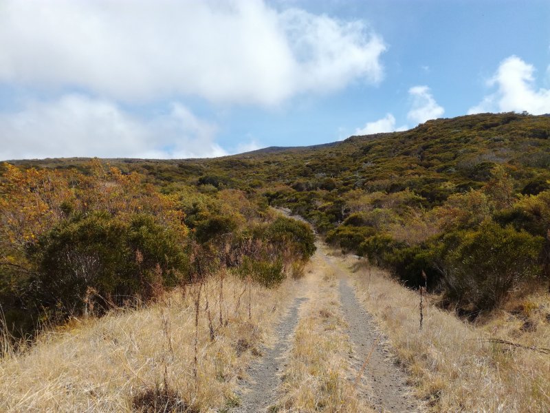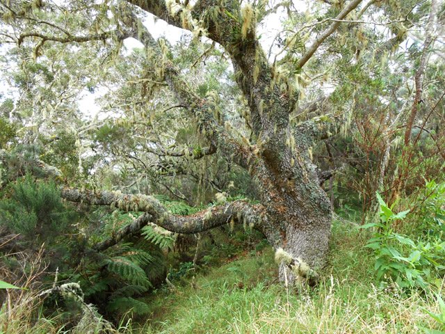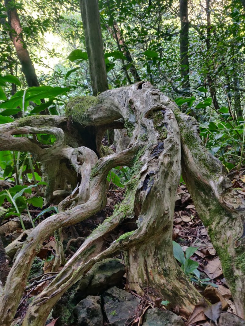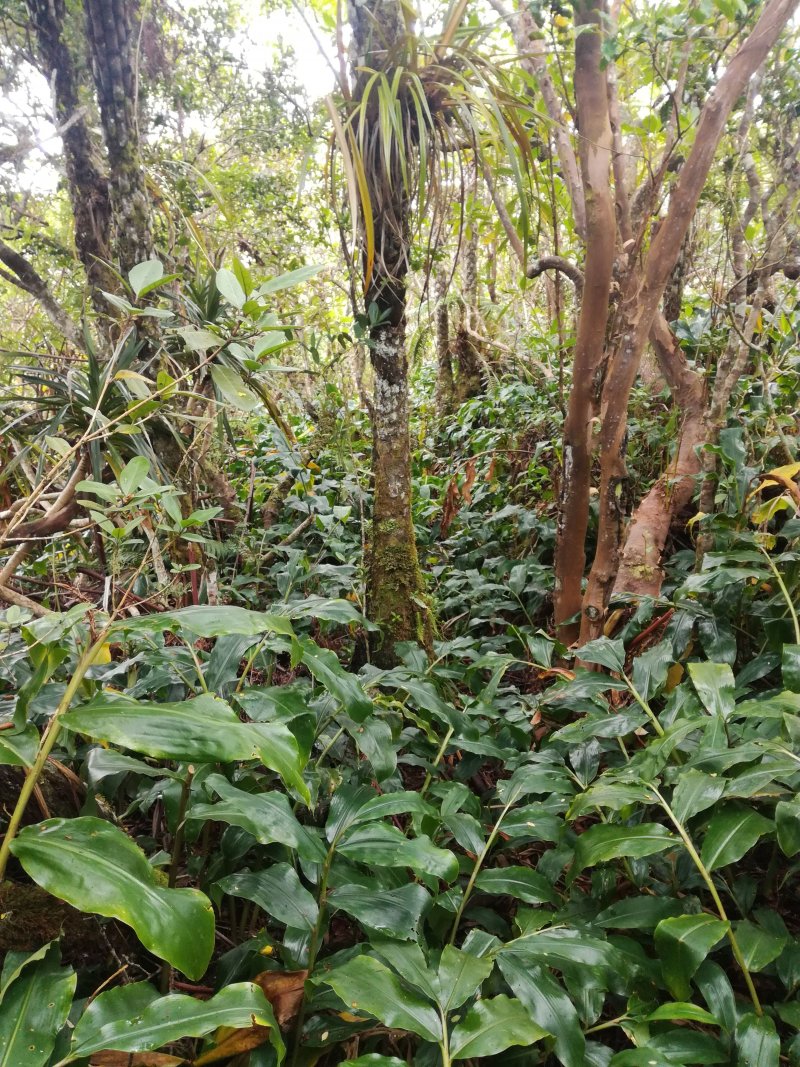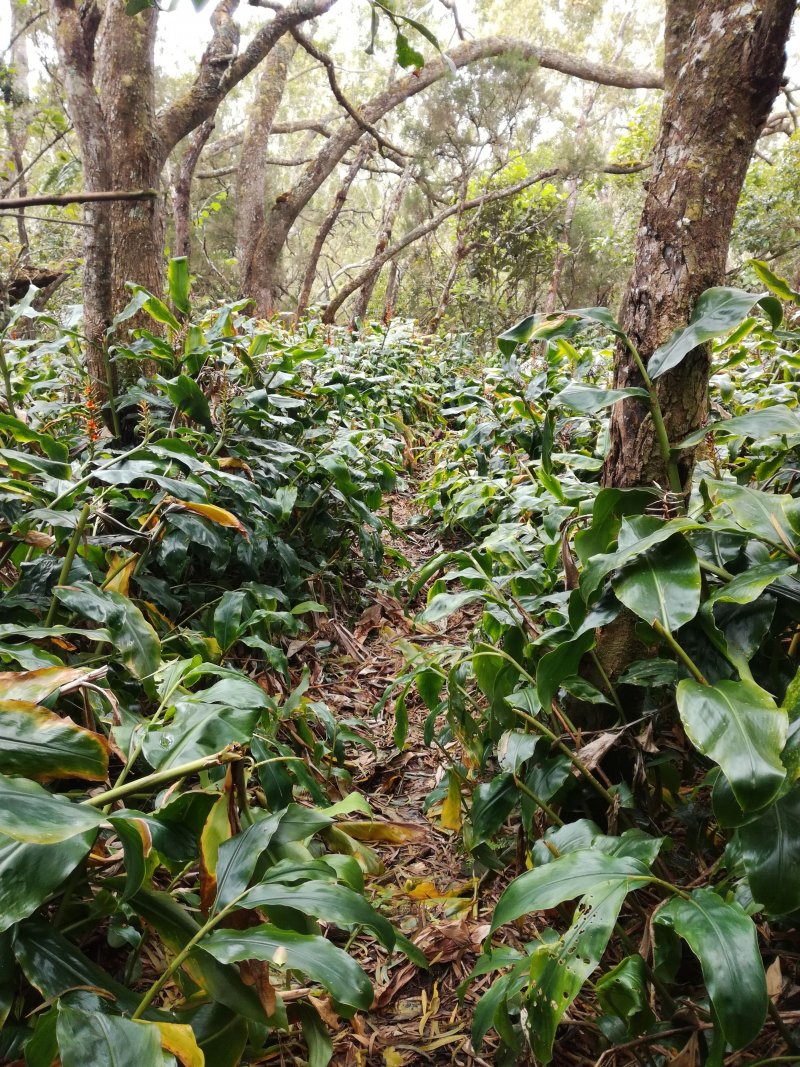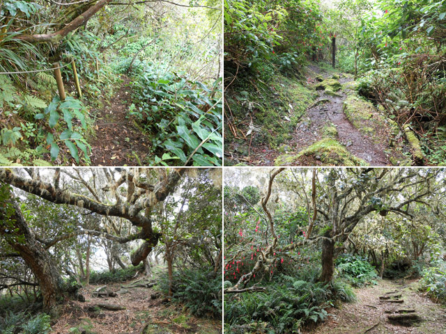 Le dénivelé positif de cette boucle moyennement longue est relativement faible pour une sortie en montagne. En revanche, deux des sentiers employés sont parfois abrupts, quel que soit le sens choisi pour l'effectuer. Les portions de pistes ou de routes rencontrées régulièrement sur le trajet présentent l'avantage de pouvoir se reposer un peu tout en profitant des points de vue assez rares sur la côté. Très fleuries au mois de février, ce sont plusieurs millions de taches jaunes des longoses qu'on aperçoit dans les sous-bois, sur les pentes des montagnes ou le long des sentiers. Si l'odeur est très agréable, il est pourtant très inquiétant d'en voir autant dans cette région. Des campagnes de reboisement se rencontrent à plusieurs moments lors de la montée mais on voit peu d'arbres au milieu de cette jungle de longoses qui ne laissent pas un cm² à la concurrence. Plusieurs pancartes ont disparu le long du trajet mais en pointant la carte il n'y a pas de difficulté pour suivre cette boucle sans crainte de se perdre. La très discrète pancarte indiquant le Sentier du Piton des Merles en direction de la Pièce Jeanne a également disparu de son tamarin. C'est la seule partie de l'itinéraire qui fait un peu aventure malgré un sentier encore bien marqué mais bientôt perdu dans les longoses si rien n'est fait. Ces deux kilomètres augmentent la moyenne de la boucle qui était bonne jusque là mais le maniement du coupe-coupe y est pour beaucoup. On se retrouve bientôt dans la descente, scabreuse par moments, de l'abrupt Sentier du Malabar Mort dans une magnifique forêt qui donne l'occasion de photographier de belles racines ou visiter un affouche bien indiqué.