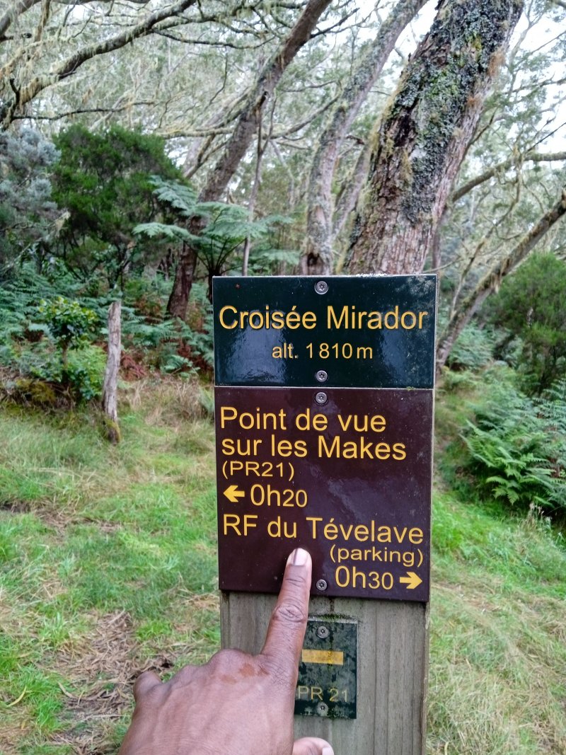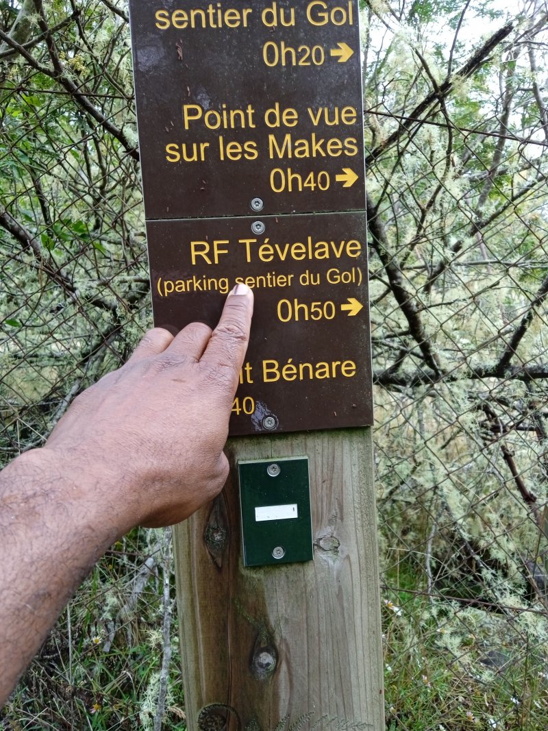 Se rendre à Saint-Louis puis aux Makes - Rouler jusqu'au terrain de sport en filant tout droit dans le grand virage à droite - Se garer à proximité du terrain puis entamer la boucle en partant vers l'observatoire (panneaux) - Franchir la barrière de la Route Forestière des Goyaves puis marcher jusqu'au départ du sentier en empruntant (ou pas) le raccourci - Grimper le sentier en forte pente jusqu'à la RF n° 58 - Suivre la piste sur deux lacets avant de reprendre un sentier qui rejoint à nouveau la RF avant Camp 2000 - Prendre à gauche à Camp 2000 et rejoindre la Route du Tévelave en passant près du mirador du Gol - Descendre en direction du Tévelave puis obliquer à gauche après 1800 mètres de marche pour trouver le discret sentier du Piton des Merles - Longer ce sentier en direction de la Pièce Jeanne et bifurquer à gauche à la pancarte pour emprunter la descente du Sentier du Malabar Mort en direction de la Découverte - Emprunter une portion du Sentier botanique ou de la boucle de la Découverte (carte) pour rejoindre les Makes - A la sortie du sentier, prendre à droite puis immédiatement à gauche pour prendre une petite route puis le sentier entre les jardins qui se finit au terrain de sport.