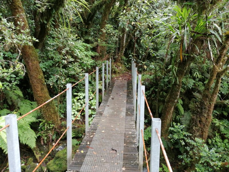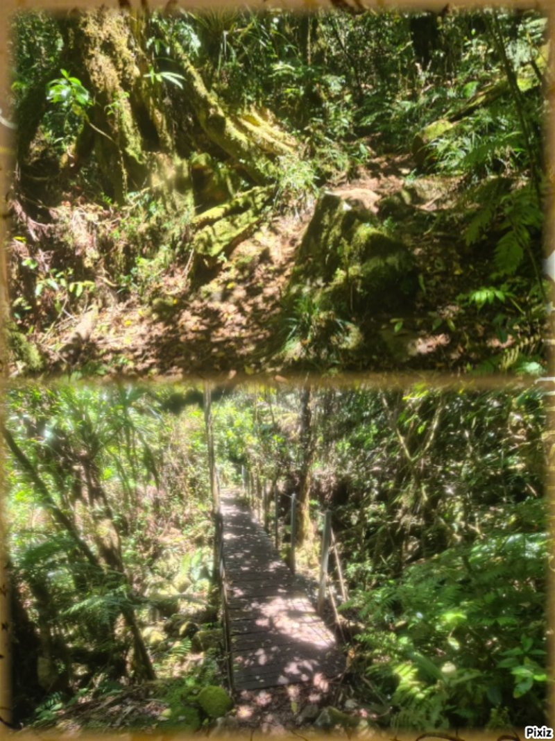 Ce sentier n'a de botanique que le nom car on a beau chercher et rechercher, impossible de découvrir une quelconque pancarte qui donne le nom des plantes rencontrées. Mais un jardin botanique sans pancarte reste un jardin botanique et on peut effectivement y découvrir toutes les plantes classiques de cette région de Bébour. On y rencontre de très beaux spécimens d'arbres recouverts d'épiphytes et on aperçoit ça et là des orchidées. La sortie est très courte donc peu fatigante pour les jambes si on décide de n'effectuer que la boucle. Mais le bruit des cascades au moment où on tourne à gauche dans la montée est trop tentant et on ne manquera pas d'aller voir de plus près.
