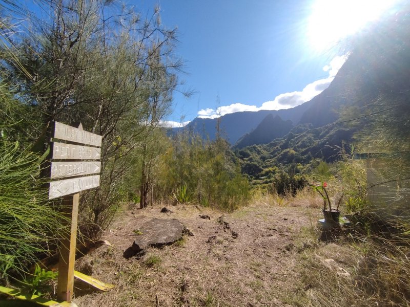 Cette magnifique sortie débute symboliquement à l'église de Cilaos. En réalité, si on prend le bus comme proposé sur cette fiche, elle commence à l'arrêt "Cilaos centre", là où tous les voyageurs descendent. La sortie est assez longue mais une bonne partie s'effectue en descente. Pourtant, il ne faut pas s'y tromper, il y aura également de belles montées, heureusement réparties sur le trajet. Cette longueur est propice aux changements de paysages entre Cilaos et le Pavillon. La randonnée en ville (Cilaos, Bras Sec ou Palmiste Rouge) est agréable car il y a toujours de belles cases ou de magnifiques jardins à découvrir. On longe ou traverse tour à tour le Bras de Benjoin, le Bras des Calumets ou le Petit Bras de Cilaos avec la possibilité d'apercevoir plusieurs cascades ou faire trempette dans quelques bassins si le débit de l'eau n'est pas trop fort. Les paysages le long du sentier sont également changeants et le contraste est grand entre la plaine humide de la Mare à Montfleury, la forêt de bois de couleurs lors de la descente vers Palmiste Rouge ou l'aridité des prairies sèches de l'Îlet Haute. Cet îlet, tantôt appelé Haut, tantôt Haute en fonction des cartes ou pancartes de l'ONF, abrite près d'une dizaine de petites cases en tôle qui semblent plus retirées du monde que certaines rencontrées dans Mafate. Bien sûr les panoramas sont également très variés, passant de la très classique ligne de séparation du Cirque de Mafate aux paysages déchiquetés du troisième tiers du parcours. Enfin, dernier contraste : la fraîcheur en sortant du bus de 7h et la chaleur insupportable du dernier tiers où les cailloux et rochers surchauffés ne peuvent même pas être touchés. Magnifique randonnée que les sportifs préfèreront emprunter dans l'autre sens à condition de prévoir une à deux heures de plus.