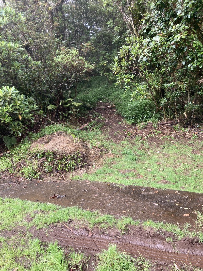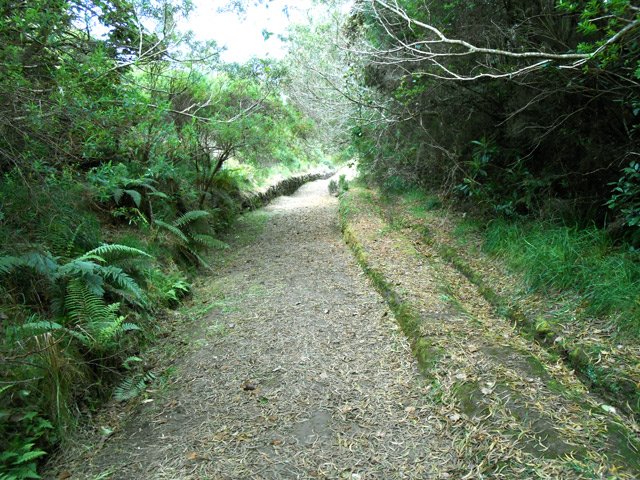 . Au retour, les randonneurs un peu aventureux repèreront, quelques dizaines de mètres avant le point 1692, un sentier remontant un talus et pénétrant dans la forêt primaire. Ne pas hésiter à y passer une demi-heure pour admirer quelques magnifiques sous bois par un sentier bien marqué. Plus tard, quelques mètres après la barrière, ces mêmes aventuriers prendront sur la droite le sentier qui monte en direction du rempart puis redescend dans la forêt pour rejoindre plus loin le sentier botanique de Notre Dame de la paix. Quelques petites sentes laissées par les tisaneurs, chercheurs de larves ou chasseurs de tangues peuvent laisser des doutes sur les 100 derniers mètres avant le sentier botanique. Cet écart ravira les amateurs de belles photos naturalistes (Photo 27), de forêts profondes (Photo 28) ou de nouveaux beaux panoramas sur la vallée et Grand Coude. Il est ainsi possible de rejoindre le véhicule en effectuant la moitié du sentier botanique et en longeant la route vers le Sud. En cas de demi-tour, faire attention aux glissades lors d'un passage délicat et bien maintenir les câbles électriques qui servent de main courante.