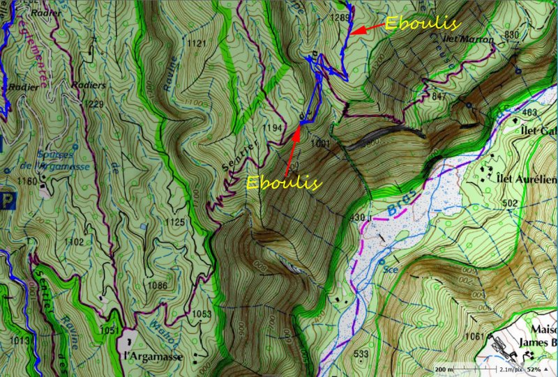- de monté à l' opposé sentier à gauche de la ravine mais en vain je n'ai trouvé aucune trace.