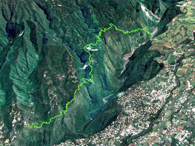 24 minutes d'un film accompagné de musiques créoles entraînantes réalisé par Serge (et sa grande moustache) qui effectuait une longue boucle partant du Dacy et terminant par la descente des Gorges du Bras de la plaine, accompagné par Martial et ses amis. Ils m'ont rejoint près de la dernière touffe de bananiers et poursuivi dans la descente vers le Bras de la Plaine mon défrichage entamé 2 kilomètres plus haut.