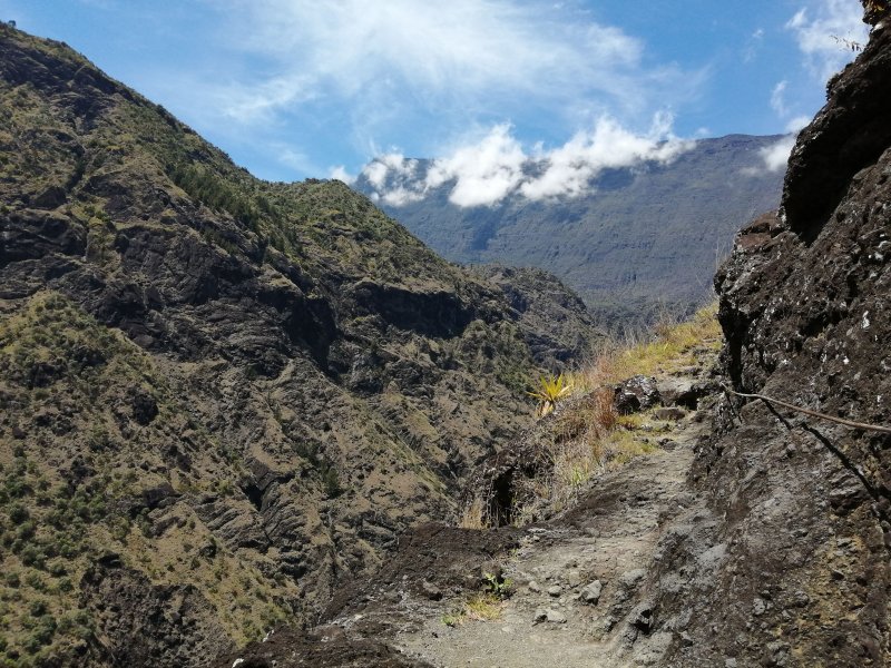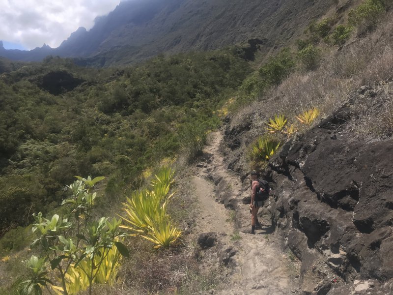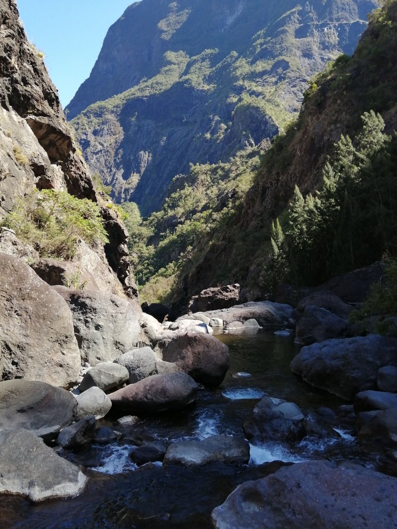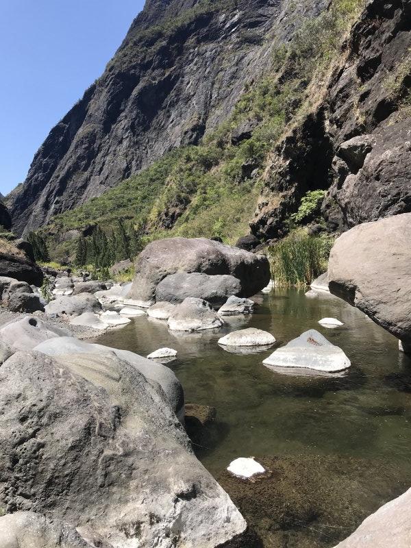 On a l’habitude de traverser Mafate dans tous les sens mais on pense rarement à y effectuer des boucles qui présentent au moins l’avantage de revenir dormir dans le même lit. Le circuit présenté ici peut s’effectuer en une seule journée depuis le Col des Bœufs mais il faut être bien entraîné. C’est donc à partir de la Nouvelle qu’il a été effectué mais on peut tout aussi bien commencer à Roche Plate située sur l’itinéraire. Le sens importe peu puisqu’il faudra dans les deux cas descendre sur les berges de la Rivière des Galets puis remonter à la Nouvelle. Quelques portions sont difficiles comme la remontée du Bronchard ou le dernier raidillon vers la Nouvelle ; d’autres sont plus agréables comme la traversée de la Plaine aux Sables ou l’approche de Roche Plate ; enfin la partie reliant Roche Plate à Trois Roches est fastidieuse sur de nombreuses petites montées et descentes. Une halte s’impose à la Cascade de Trois Roches en fonction du temps de marche déjà effectué. Comme toujours dans Mafate, les paysages sont grandioses quelle que soit la direction du regard.
