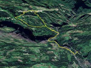 Se rendre à Salazie puis bifurquer à droite vers Grand Îlet - Traverser Mare à Vieille Place et rouler jusqu'à la Rivière Fleurs jaunes - Ne pas passer le pont et se garer sous les filaos de l'aire de pique-nique - Passer sous le pont puis descendre la rivière à l'instinct jusqu'à la passerelle qui traverse la vallée - Dépasser la passerelle et trouver le sentier qui monte vers la Mare à Martin - Rejoindre le sentier en boucle et prendre à droite en coupant la ravine à une grande touffe de bambous - Poursuivre en montée, couper une piste et continuer jusqu'à la mairie annexe de la Mare à Martin - Suivre la route vers la gauche et prendre la première route à gauche - Emprunter sur une courte portion en terre et pierre pour poursuivre sur la route - Presque à la fin de la route, trouver à gauche le sentier très visible qui redescend vers la piste croisée en montant - Poursuivre en passant devant un élevage de bovins puis marcher jusqu'au radier de la Ravine Mathurin - Bifurquer à gauche quelques mètres avant le radier puis suivre sans hésiter le sentier qui descend fortement dans les champs de chouchous, les cannes fourragères puis la forêt jusqu'au sentier marron pris à l'aller - Tourner à droite et rejoindre le point de départ par le même itinéraire.