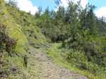 La randonnée commence au pont qui franchit la Rivière des Fleurs jaunes sur la route de Grand Îlet après avoir passé le grand village de la Mare à Vieille Place. Une aire de repos sous les filaos permet de laisser le véhicule à l'ombre. Un sentier en amont du pont descend près de la rive sans difficulté (Photo 1). Le but consiste alors à rejoindre la passerelle qui franchit la vallée en alternant les passages en rive droite ou gauche toujours sans danger et en se mouillant les pieds. Pas de sentier, pas de balisage : le cheminement, comme dans tous les fonds de ravines, s'effectue à l'instinct. Déjà sous le pont, le spectacle est au rendez-vous avec bassin et petite chute (Photo 2). On commence par la rive droite sur des plaques basaltiques et quelques ouvrages de maintien de la berge (Photo 3). Rejoindre l'autre rive dès qu'un gué naturel le permet et emprunter une aire dénudée en rive gauche où l'on devine des traces de vieille piste (Photo 4). Poursuivre jusqu'au confluent avec la Ravine Roche à Jacquot puis longer la rivière en cherchant le meilleur endroit où poser les pieds (Photo 5). La marche n'est pas toujours aisée sur ces grandes épaisseurs de sable, terre et galets (Photo 6). La rivière longe une haute falaise friable comportant une belle grotte (Photo 7) et se poursuit dans le même type de paysage en direction de la passerelle qu'on aperçoit plus loin (Photo 8). On rejoint très vite la passerelle et on se régale des deux cascades qui surgissent au plus près de l'ouvrage (Photo 9). L'une provient d'une petite ravine venant de la Pente Carozin ; l'autre, haute et impressionnante, semble surgir du haut de la falaise. Ce sont les derniers mètres de la Ravine Mathurin qui finit là son court périple dans les sous-bois de filaos et les champs de chouchous de la Mare à Martin. Ne pas manquer le départ du sentier qui rejoint la passerelle puis le sentier vertigineux et mal entretenu situé au-dessus (vois § plus bas). On s'élève rapidement au-dessus des filaos pour avoir une idée de la vallée qu'on vient de quitter (Photo 10). Plus haut, c'est toute la vallée qu'on domine (Photo 11). Commence alors une petite aventure pour escalader les 150 m de D+ vers la boucle. Le sentier est peu marqué mais toujours visible. Il a été en partie taillé dans la falaise friable et comporte une dizaine de micros-éboulis qui se passent sans aucun danger (Photo 12). Quelques galaberts peuvent griffer au passage mais un coup de bâton bien placé permet d'éviter ces aléas de la marche sur sentier marron. Attention, le sentier est parfois vertigineux (Photo 13) et pourrait indisposer les gens qui détestent regarder plus bas. Pas de rambarde, un sol glissant, de petits éboulis, pas de végétation ; tous les ingrédients pour faire flageoler les jambes. Ne pas manquer la chapelle de 30 cm dédiée à Saint-Expédit qui ne doit plus voir défiler beaucoup de fidèles ! Le bruit de l'eau d'une petite ravine marque la fin proche des ennuis. On passe en quelques mètres du fouillis de la végétation à un sentier très propre (Photo 14 et 15). La boucle est propre, la pente sérieuse et il faudra fournir de vrais efforts pour rejoindre la Mare à Martin. En cas de grosse fatigue, il est possible de tourner à gauche sur la piste qu'on rencontre dans la montée ; elle se termine à l'élevage de bovins qu'on croisera à la descente. Passé la piste, la pente semble interminable mais les vues sur la face Nord du Piton d'Anchain, lorsqu'on se retourne, permettent aussitôt d'oublier le mal de jambe (Photo 16). Une dernière portion herbeuse permet de terminer la montée avant d'arriver aux habitations (Photo 17). C'est le soulagement en arrivant à la mairie annexe de la Mare à Martin. Les 300 mètres de route qui longent de magnifiques petites (ou grandes) cases permettent pour un moment de changer de monde (Photo 18). On marche ainsi jusqu'à la Ravine Mathurin qui traverse la route sur un radier perpétuel (Photo 19). Ne pas franchir le radier mais prendre 5 mètres avant le chemin qui descend à gauche et rejoint plus bas les champs de chouchous et la grosse canalisation qu'on aura guère quitté tout au long du circuit (Photo 20). Le tuyau et le sentier pénètrent sous le couvert des filaos (Photo 21). Ne pas manquer sur la droite, les belles cascades de la Ravine Mathurin, hélas encombrées d'arbres et branches arrachées par le dernier cyclone. La pente devient aussi raide en descente que celle qu'on a connue de l'autre côté de la boucle en montée et c'est donc très vite qu'on rejoint le sentier marron. Les plantes, le tuyau, les à-pics sont toujours là et la descente rend encore plus impressionnant la sensation de vertige. Un sentier part en face, sous la passerelle pour rejoindre la route par la Pente Carozin mais il en plus piteux état que le précédent. Les chaussures ont séché depuis deux heures mais il faudra quand même reprendre le lit de la rivière pour retrouver le véhicule sous les filaos du pont de la Rivière des Fleurs jaunes. Pour ceux qui ne veulent effectuer que la boucle sans la partie aquatique, se garer à la mairie annexe de la Mare à Martin puis suivre les explications ci-dessous pour revenir au point de départ.