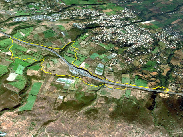 Rouler sur la Route des Tamarins et sortir à la bretelle vers la Saline - Dans la montée, avant le premier lacet vers la Saline, prendre à gauche vers l'aire de repos de l'Aire du Tabac - Rouler jusqu'au dernier parking - Débuter la boucle par le point de vue sur la mer à partir de l'aire de pique-nique qu'on rejoint en passant sous la RN - Revenir vers le parking puis bifurquer à gauche sur la petite route qui se transforme très vite en piste empierrée à l'approche de la Ravine Tabac - Suivre cette piste qui longe la RN1 et surplombe l'aire de service de la Saline - A la fin de la route, prendre la piste qui bifurque à droite et s'éloigne de la RN1 - La suivre malgré des virages dans tous les sens en direction de la Ravine de la Saline qui se franchit facilement par un sentier bien indiqué sur la carte - Au rempart, prendre à gauche en direction de la RN en longeant la ravine - Reprendre la piste et ne pas s'éloigner de la RN lorsqu'elle se termine - Longer le petit champ entre le grillage et les cannes à sucre et franchir la Route des Tamarins en passant sous le pont au-dessus du Petit Bras de l'Ermitage - Retrouver le Chemin Bruniquel et le suivre sans hésitation vers l'aire de Service puis le tunnel qui passe dessous la RN1 et rejoint la piste employée au départ - Rejoindre le parking, fin de la boucle.