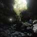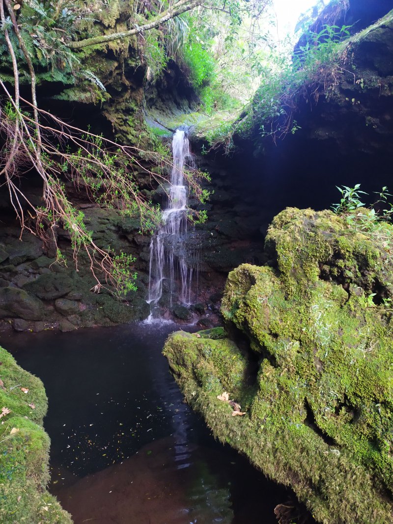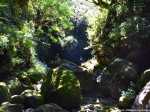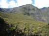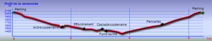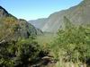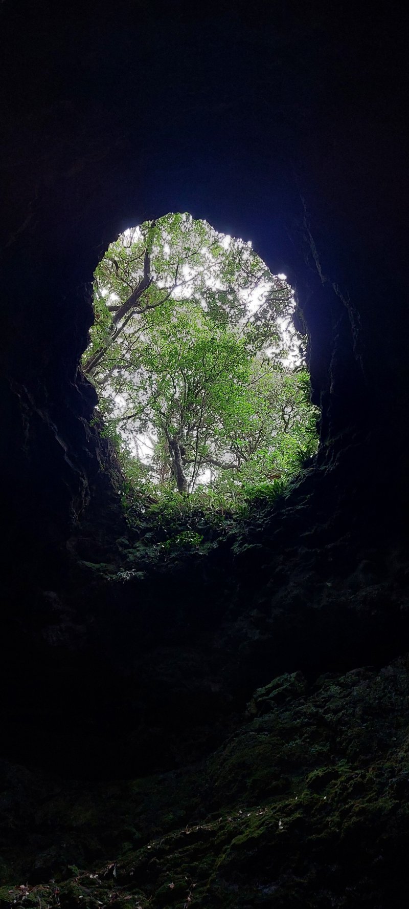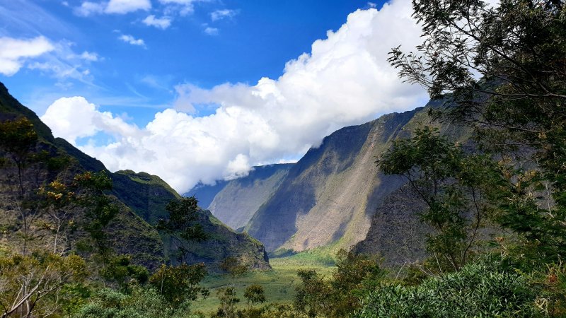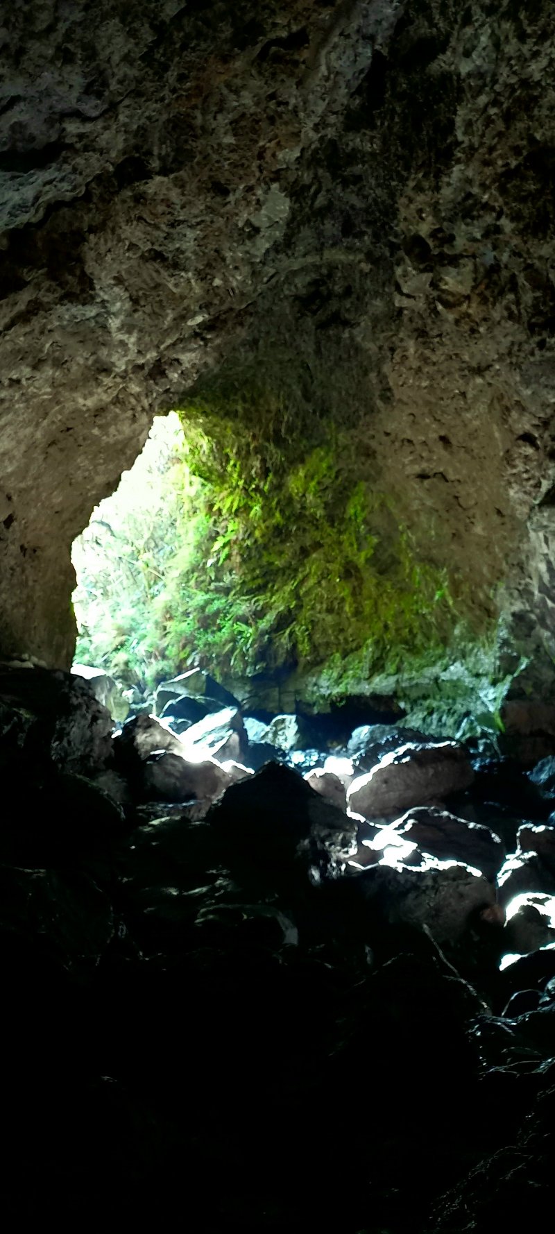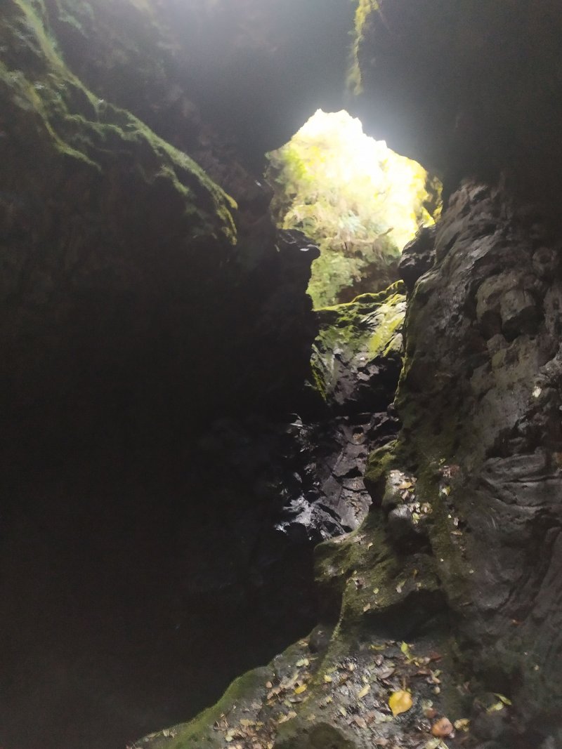 La sortie débute au plus près du rempart de la Rivière des Remparts, cette caldeira presque verticale qui isole l'îlet de Roche Plate de la zone du Volcan. Le sentier, constitué de marches nombreuses en bois et en pierre est assez étroit et en forte pente dans les branles qui le bordent (Photo 1). Il comporte d'assez nombreux lacets, des parties vertigineuses protégées de rambardes ou isolées du vide par la végétation (Photo 2). Le haut de la vallée de la Rivière des Remparts est totalement recouverte d'une belle forêt de bois de couleurs visitée uniquement des braconniers et des spéléologues à la recherche de nouveaux tunnels (Photo 3). La descente dure moins d'une heure pour rejoindre les superbes mapous et autres énormes arbres qu'on trouve dans la zone humide à la fin du sentier (Photo 4). L'endroit porte d'ailleurs le nom de cet arbre très présent à l'aire discrète que tout le monde utilise pour se reposer ou se ravitailler. Les premières grottes se situent à la fin de la descente et sont faciles à repérer. Quand on arrive à la pancarte en bois qui indique les directions, prendre à gauche le petit sentier arrivant très vite à l'effondrement qui paraît inaccessible. Longer la paroi sur quelques mètres sur de gros rochers moussus et descendre dans le lit de la rivière. La descente est très délicate et les racines indispensables pour se maintenir. Le premier tunnel est situé immédiatement sur la droite. Attention aux gros rochers lisses, humides ou moussus, en permanence arrosés par les gouttelettes tombant du plafond (Photo 5). Le tunnel lui-même est moins beau que ceux plus récents qui se visitent dans le Grand Brûlé. Le cadre, en revanche, surpasse largement. C'est le début d'une originale balade sportive dans un monde minéral peu connu puisque difficile d'accès. La lampe devient souvent indispensable pour apercevoir la suite de la galerie ou admirer quelques anciennes coulures accrochées au plafond (Photo 6). Les portions courtes sont naturellement éclairées par les rayons du soleil mais la lampe permet de surveiller où poser le pied (Photo 7). Profiter de l'effet de lumière qui passe par les ouvertures faites dans le plafond par les effondrements successifs (Photo 8). On peut ainsi se promener à l'ombre et à la fraîcheur pour se rapprocher d'une superbe arche naturelle surmontée par une trouée de la voûte (Photo 9). On a du plaisir à parcourir le fond du torrent à sec même s'il n'y a pas de tunnel (Photo 10). La pente devient un peu plus forte et s'approche d'une merveille de la nature représentée par le tunnel qui file vers le bas, surmonté d'une arche et d'une trouée où s'infiltrent les rayons (Photo 11). On retrouve ces lumières irisées à plusieurs endroits à condition de passer à la bonne heure, quand le soleil est haut (Photo 12). La descente prend fin à l'approche d'une profonde cavité creusée par une cascade, équipée par les professionnels mais infranchissable au randonneur. Il faut donc remonter à la surface, mais sans regret, car peu de gens peuvent admirer ces paysages uniques. Il est possible de remonter la ravine Citron Galet en amont du sentier mais on ne trouvera plus de ces tunnels. Reprendre le discret sentier pour retrouver l'ombre des mapous ou grands tamarins des hauts. Le sentier se poursuit vers Roche Plate, d'abord plat et humide avant de descendre de plus en plus en alternant les portions terreuses, basaltiques, caillouteuses (Photo 14 et Photo 18). On distingue très bien sur les photos satellites d'énormes cavités sur la gauche du sentier lorsqu'on descend. Elles ont toutes été visitées et de très discrètes sentes envahies de végétation permettent de s'en approcher au plus près. Attention de bien regarder où on met les pieds car la cassure arrive sans avertir et une chute serait fatale malgré la végétation qui a envahi ces énormes trous de plus de 20 mètres de diamètre (Photo 15 et16). Une astuce pour repérer ces minuscules sentiers : ils sont à peine visibles mais comportent presque tous un caillou de lave pour en marquer le début. Il est tout à fait normal que les professionnels ne créent pas de sentier officiel ou ne posent pas de cairns qui attireraient tout un chacun de passage dans le coin. Ces visites s'effectuent donc au gré de chacun. La carte ci-dessous marque trois de ces emplacements reconnus ; deux très visibles, un autre un peu plus bouché par la végétation. Les voir tous nécessiterait plusieurs heures supplémentaires. On reprend donc la descente jusqu'à la cascade de la Ravine Citron Galet, facile à repérer s'il y a de l'eau car elle coule à deux mètres du sentier avant de plonger dans une cavité sans fond et dangereuse (Photo 19). Si elle est à sec, comme ici, trouver le seul vrai départ de sentier sur la droite depuis le début de la descente (la cascade est marquée réglementairement d'un trait bleu sur la carte IGN). Prendre garde pour passer le haut de la chute puis remonter la ravine jusqu'à l'entrée d'un tunnel (Photo 20). Visiter ce nouveau havre de fraîcheur proposant également des trouées dans le plafond en partie bouchées par la végétation (Photo 21). L'endroit, plus court que les précédents, offre les mêmes lumières que plus haut (Photo 23). Le haut du tunnel est barré par une cascade et une pente forte s'il n'y a pas d'eau (Photo 24). Il faut donc rebrousser chemin jusqu'à la cascade du départ. Pourquoi ne pas rajouter un peu d'aventure supplémentaire en bifurquant à droite à la cascade et en rejoignant la ravine après avoir traversé une partie de la forêt de bois de couleurs. Les rives ne sont pas toutes abruptes et on rejoint facilement les galets après une centaine de mètres. Il suffit alors, après avoir flâné à la recherche de nouvelles curiosités, de prendre en rive gauche pour rejoindre le sentier en traversant une végétation facile à franchir. On peut désormais rejoindre le poi