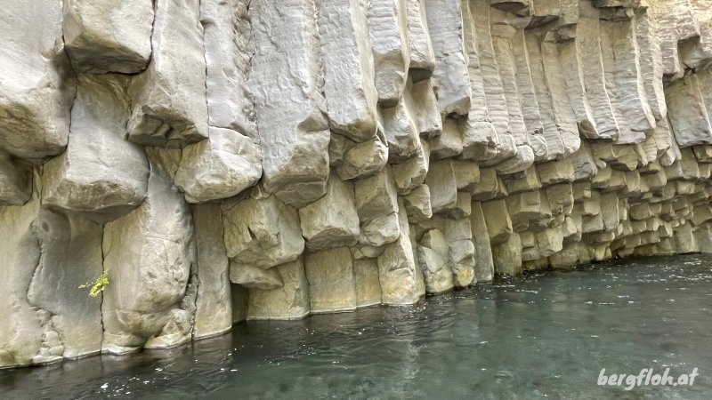 ATTENTION : Le barrage situé en amont des gorges relâche de l'eau régulièrement et automatiquement quand le réservoir du Dassy est rempli de ses 10 000 m3 et que la consommation ne bat pas son plein. Dans ce cas, c'est la totalité de l'eau du Bras de La Plaine qui coule dans les gorges et augmente brutalement le niveau de l'eau. Le courant devient alors très fort et dangereux au milieu du bras. Cette remontée des gorges est avant tout ludique. Toute personne éprouvant des difficultés se contentera de visiter les gorges jusqu'aux orgues basaltiques de la photo 20.