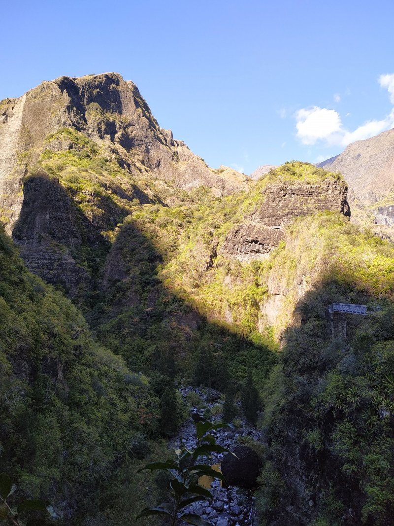 A la Plaque, il est alors possible de rejoindre la route de Grand Ilet par le Sentier Scout en prenant à droite plutôt qu'à gauche.