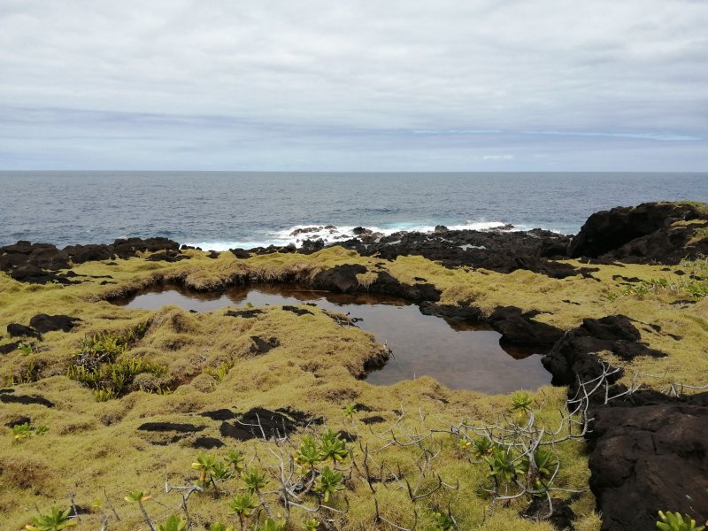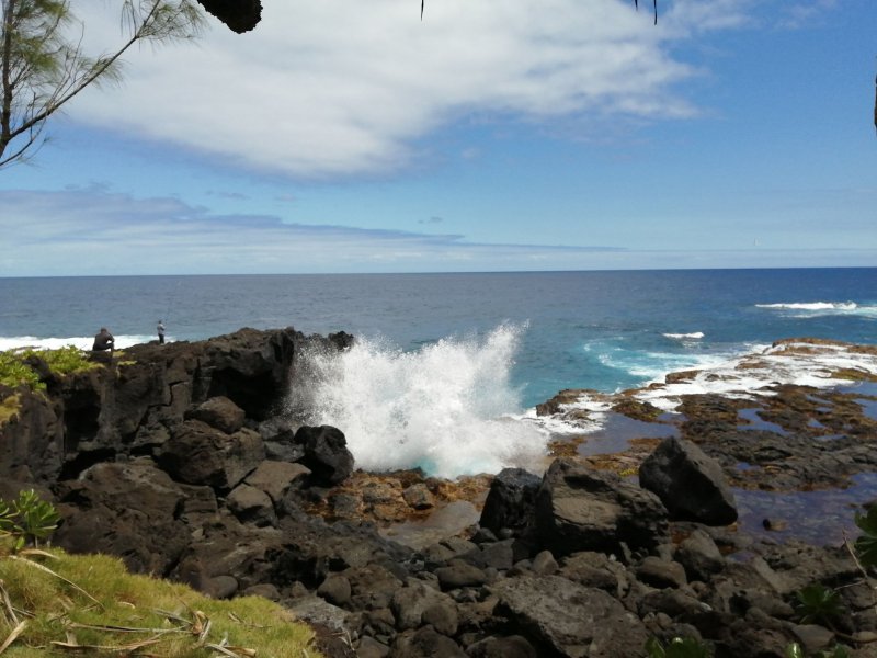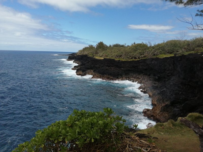 La randonnée débute à l'entrée du village de Mare Longue en venant de Saint-Joseph. Ne pas manquer la visite des deux chapelles proches du sentier au retour. On attaque directement dans les bois par le sentier qui évite d'emprunter la totalité du Chemin de Ceinture ou la route commençant près du Jardin des Parfums et des Epices. Le sentier est facile. Il serpente un peu entre les filaos pour éviter des petites grottes ou effondrements. Sur le côté, impossible à manquer, des pieds de vanille occupent le moindre tronc (Photo 2). En marchant le matin, on peut rencontrer le propriétaire qui vient, muni de son aiguille, pour fertiliser les fleurs du lever du jour. Ils sont rarement avares en explications si on s'intéresse à cette culture et qu'on prend quelques minutes pour discuter ou assister à l'opération. Plus loin, le sentier est assez droit dans une végétation de bois de couleurs des bas. Le sentier, bordé de fougères, est la plupart du temps couvert de lave pour une marche assez facile (Photo 3). Il rencontre le Chemin de Ceinture dans un lacet puis repart vers le nord, toujours dans des sous-bois agréables (Photo 4). Prendre à droite en arrivant la prochaine fois au Chemin goudronné. Très vite, on traverse un petit hameau de quelques cases entourées de jardins fleuris. On bénéficie de nombreux panoramas sur l'océan et la côte boisée de filaos (Photo 5). Les vues sont en général dégagées tout au long de la montée légère sur une route étroite mais agréable et sans circulation. Quelques vacoas (pandanus) poussent en bord de route (Photo 6). Ne pas pénétrer dans la clairière où une vingtaine de ruches accueillent des milliers d'abeilles en plein travail (Photo 7). On est bien sur un trajet pour amateur de route (Photo 9) et de canne à sucre qui pousse ici à perte de vue (Photo 8). Au-dessus des champs dépasse le modeste cratère du Piton d'Arzule, recouvert de forêt (Photo 10). On se retrouve à la verticale de Saint-Philippe qui sera contourné en fin de boucle (Photo 12). On marche à quelques mètres seulement du Parc National et il y a de moins en moins de canne sur la gauche de la route mais beaucoup de bois de couleurs (Photo 13). La route, toujours aussi étroite se met à monter en lacets d'une cinquantaine de mètres, en ne quittant bien sûr pas les cannes. Puis elle reprend une trajectoire assez plate. Après le piton, c'est la ravine qu'on traverse sans s'en rendre compte (Photo 14). D'avoir grimpé un peu avec les lacets, on est plus près du Piton d'Arzule qu'on revoit souvent au-dessus des cannes (Photo 16). La piste se met à tourner à droite à partir d'un lacet. C'est le début de la descente. On voit très bien le point de chute dans la capitale du Sud Sauvage (Photo 17). Il y a toujours autant de canne à sucre mais on rencontre quelques cocotiers et bananiers pour changer un peu (Photo 18). Les lacets de plus en plus longs permettent de descendre sans effort. La route passe près de quelques petites propriétés disséminées dans cette campagne. On franchira six fois cette fameuse Ravine d'Arzule grâce aux nombreux lacets. Elle est parfois assez rocheuse. Une précédente fiche permettait de regagner le lotissement des Sables en traversant les cannes. Certaines pistes étant privées depuis, cette boucle emprunte désormais la totalité du Chemin de Ceinture. En arrivant à la RN2 après cette quinzaine de lacets, il est possible de partir en face par la Rue de la Pompe et raccourcir la boucle. Sinon, prendre à gauche et filer vers Bois Blanc en prenant garde à la circulation. La circulation est beaucoup plus importante et il faut un bon quart d'heure pour rejoindre le lotissement des Sables Blancs, entre la route et la mer. Longer la Rue Isnelle Amelin ou Pierre Bérégovoy jusqu'à la seule trouée rencontrée entre les maisons et y dénicher le petit sentier dans les fougères qui rejoint en une cinquantaine de mètres le Sentier Littoral de Saint-Philippe (Photo 19). Le plus difficile est terminé. Il suffit désormais de suivre ce sentier ou les sentes parallèles des pêcheurs pour regagner Saint-Philippe. Le sentier effectue des zigzags en fonction de la côte très découpée du Sud Sauvage. Les vacoas ont agréablement remplacé la canne à sucre (Photo 20). Près de la mer, les grandes herbes tentent parfois d'envahir le passage mais le sentier est fréquenté et on passe sans problème (Photo 21). Quand la mer semble plus belle qu'ailleurs, délaisser le sentier pour suivre les traces de pêcheurs en direction des falaises. Repérer les souffleurs au bruit du rejet de l'eau par la pression (Photo 22). La mer est toujours forte dans cette région et les vagues créent parfois de belles éclaboussures sur les basaltes de la falaise (Photo 24). Comme souvent dans le sud, on traverse de belles zones couvertes d'un magnifique gazon fin endémique et qui semble toujours tondu de la veille (Photo 25). Le littoral de Saint-Philippe est agréable même s'il ne comporte pas de plage (Photo 26). On parvient à la Pointe de la Mare d'Arzule, tout près de l'embouchure de la ravine qu'on franchit pour la septième fois. Comme la boucle est presque terminée, tenter une balade sur les laves parfois dangereuses du Quai de Carangue ou de la Marine pour dénicher bassins, coquillages ou poissons s'il y a de l'eau dans les bassins. Il ne faut qu'une minute pour rejoindre la Marine, une étroite bande bétonnée permettant la mise à l'eau et la sortie des bateaux de pêche (Photo 27). Tout près également, le monument à la mémoire des disparus dans le naufrage du Warren Astings en 1897. Il ne reste plus que 600 mètres à effectuer. Ils peuvent se faire par la route si la circulation est faible ou par la mer comme dans la randonnée de la boucle du Baril à Mare Longue.