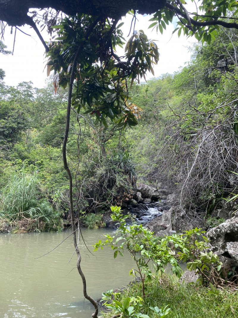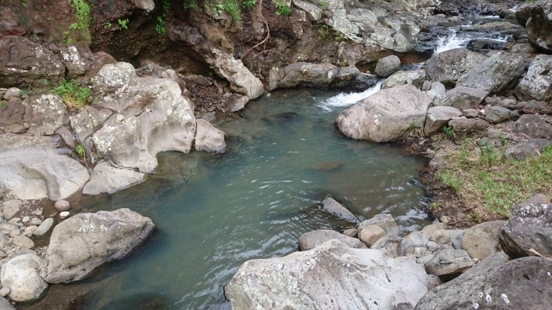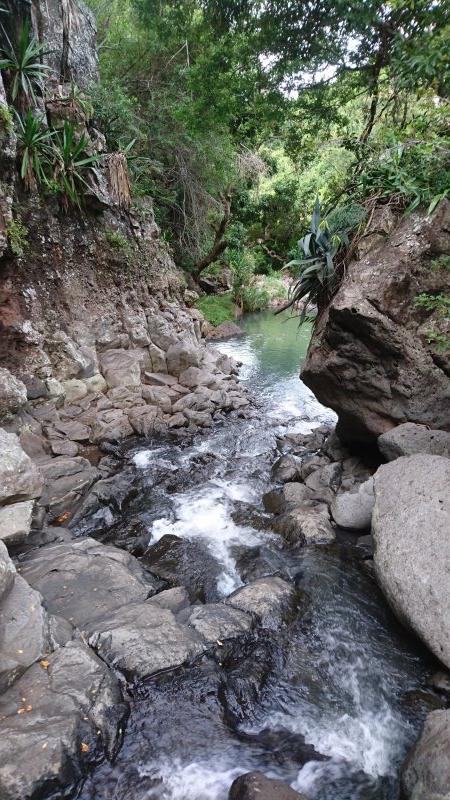 J'ai essayé aujourd'hui de passer par le bassin dans la Grande Ravine, l'histoire d'enchaîner avec la boucle du Moulin Cader et éviter de marcher sur la route. J'avais bien lu les commentaires disant que le bassin ne valait pas le coup (tant pis). il semblait néanmoins - selon les derniers commentaires - que c'était faisable. Eh bien, ça ne l'est plus. J'ai essayé de foncer mais au bout de cent mètres j'ai été obligée de jeter l'éponge, faire demi-tour et remonter au Ruisseau Blanc pour redescendre au Moulin Cader. N'y allez pas.