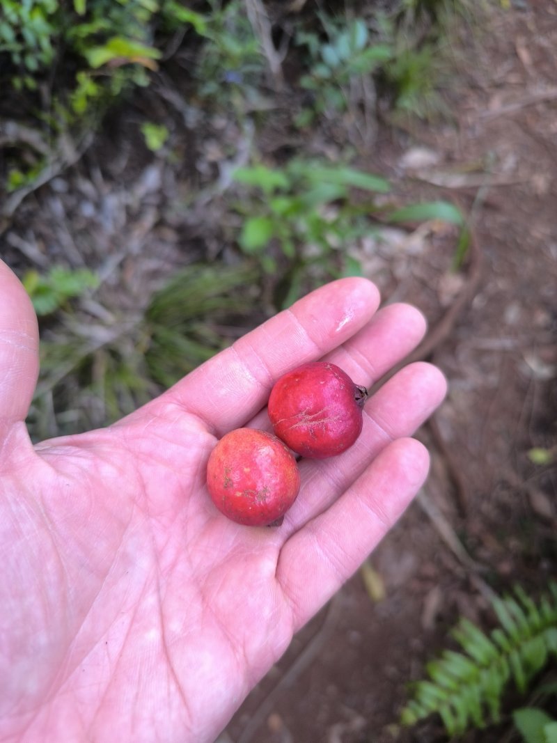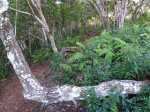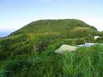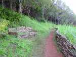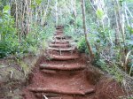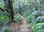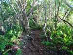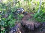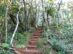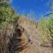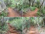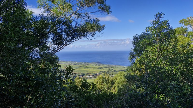 Montée au piton : La randonnée débute à la fin des champs de canne près d'une barrière fermant le chemin menant au cratère. Suivre le chemin et rejoindre les sentiers. L'un monte tout droit vers le rempart (non prévu sur cette fiche). Un autre part à droite et l'on rentrera par celui de gauche à la fin de la première boucle. Débuter par la droite, longer les cannes et quelques fascines de goyaviers (Photo 1). Au bout de 300 mètres de marche facile, on profite d'un beau point de vue sur l'océan et la ville de Saint-Pierre (Photo 2). Sur la droite du panorama, le sommet le plus haut domine la campagne (Photo 3). C'est de là-haut que débute un sentier descendant en très forte pente pour rejoindre le point de départ. Le sentier, large et agréable, se prolonge en grimpant parfois de manière un peu raide vers le sommet du piton (Photo 4). Outre les fougères bordant le sentier, on rencontre fréquemment des pandanus aux magnifiques racines (Photo 5). Quelques arbres biscornus peuvent servir de siège pour souffler de l'effort créé par cette première pente (Photo 7). On arrive à un banc en bois de goyavier qui permet de se reposer et profiter de la magnifique vue sur Grande Anse et Petite Île entourées de canne à sucre (Photo 8). Poursuivre sur la crête sur un sentier très agréable et assez plat (Photo 9). Prendre à droite au croisement rencontré plus loin. Il est possible que le sentier de gauche qui redescend au parking soit un peu délaissé. Poursuivre sur un beau sentier ombragé à travers les arbres jusqu'au sommet du Piton (Photo 11). Hormis quelques goyaviers on ne rencontre pas trop de plantes invasives. Le sol devient de plus en plus rocheux, obligeant parfois à lever haut le pied (Photo 12). De nombreux rochers bordent le sentier sans gêner le passage (Photo 13). A partir du sommet, la descente est rectiligne sur un sentier raide mais constitué de dizaines de hautes marches de bonne qualité (Photo 15). Prendre son temps pour ne pas trop solliciter les genoux. Profiter de la végétation variée dont certains bois de rempart remarquables (Photo 16). Ce sentier s'assagit au bas de la pente à travers les faux poivriers assez nombreux dans la zone (Photo 17). Il bifurque sur la gauche et rejoint le point de départ après quelques courtes dents de scie qui se passent sans effort (Photo 18). On s'approche de plus en plus des habitations que l'on devine dans la végétation. On profite aussi de quelques points de vue sur les champs et sur l'océan. Le sentier traverse de grandes surfaces de fougères bien plus agréables que les longoses des autres régions de l'île (Photo 19). Il descend une dernière fois en se rapprochant de hautes herbes occupant le pied du piton (Photo 20). Rejoindre le croisement des sentiers puis la piste et partir à droite jusqu'au parking. C'en est fini de cette boucle que les sportifs effectuent dans le sens des aiguilles d'une montre pour apprécier la montée vers le sommet (voir profil ci-dessous).