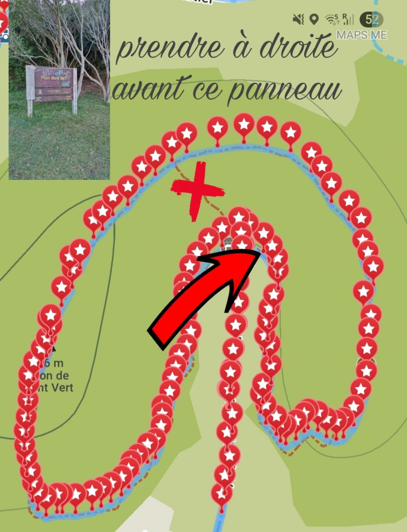 Se rendre à Saint-Pierre puis à Mont-Vert les Bas en suivant l'une des nombreuses routes qui mènent au Piton qu'on aperçoit toujours depuis le véhicule - Suivre les indications des panneaux et se garer sur le parking sommaire aménagé le long de l'Allée Piton Mont-Vert – Rejoindre le fond du cratère puis emprunter le sentier qui débute juste à côté du kiosque et longe le rempart vers le Sud - Remonter vers le sommet jusqu'au point de vue sur Grande Anse - Poursuivre tout droit jusqu'au sommet du Piton - Attaquer la descente jusqu'au bas de la pente et rejoindre le parking, fin de la première boucle.