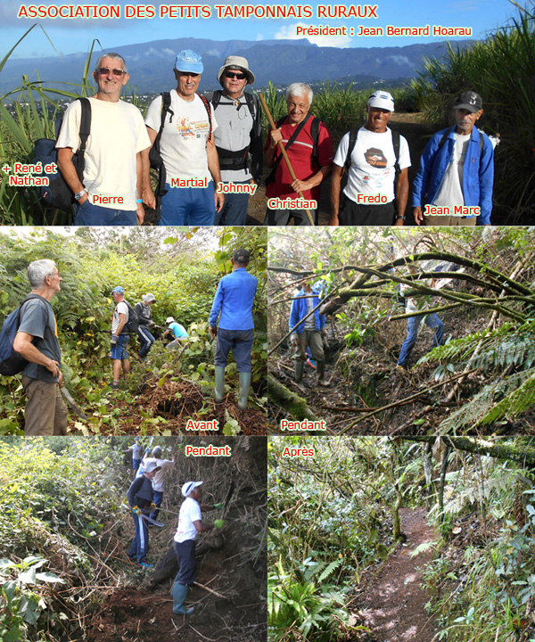 L'association, qui avait remarquablement créé les 14 kilomètres de sentier reliant Bel Air (Le Tampon) à Notre Dame de la Paix en suivant la Rivière d'Abord était en sommeil depuis quelques années, faute de financement. Le sentier, envahi par les vignes marronnes, galaberts et bringeliers était, quant à lui, plus mort qu'en sommeil. Fin 2018 et début 2019, une poignée de bénévoles s'est réunie plusieurs vendredis matins et ont entrepris un travail titanesque pour redonner à cette longue et difficile trace son aspect de 2013. Merci à toute l'équipe au nom des randonneurs qui devraient s'y rendre le plus souvent possible et plus nombreux afin de conserver à ce magnifique sentier la qualité obtenue après ces importants travaux.
