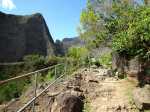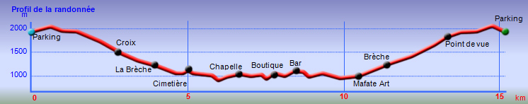 La randonnée débute à quelques mètres du Petit Bras de la Ravine Divon où des places de stationnement attendent les randonneurs empruntant le sentier de Roche Plate. On peut tenter d'arriver très tôt et profiter du lever de soleil depuis le long belvédère du Maïdo avant de mettre le sac sur le dos (Photo 1). Entamer la courte montée de 70 m vers l'entrée de Mafate en traversant la planèze sur de larges plaques basaltiques bordées de branles verts et d'ajoncs d'Europe (Photo 2). Passer la porte grillagée et entamer pour deux bonnes heures la très longue descente jusqu'aux Orangers. On distingue déjà, à travers les arbustes calcinés du dernier incendie, les deux premiers îlets à l'ombre de la Crête des Orangers (Photo 3). Le début de la descente s'effectue sur de grosses pierres créant de hautes marches. Le terrain s'assagit un peu plus loin pour épouser longuement la courbe de niveau (Photo 4). Quelques passages délicats abîmés par des éboulis dus au feu sont sécurisés de solides câbles d'acier. Plus on avance et plus le sentier descend par des lacets toujours plus nombreux (Photo 5). On peut effectuer un court détour pour un point de vue sur le sud du cirque ou garder cet écart pour le retour. A partir d'une croix sur la droite, la pente s'accentue encore, passe par l'héliport sommaire pour arriver sur un rein qui longe la rive gauche de la Ravine de la Brèche. Plus bas, le sentier traverse la ravine à sec et on arrive très vite à la Brèche. Profiter du superbe paysage sur une grande partie du cirque depuis les escaliers en béton (Photo 6). Peu d'ombre pour une halte près de la haute aiguille basaltique de la Brèche (Photo 7). Poursuivre en partant à gauche pour terminer la descente en rejoignant la Ravine de la Brèche sur des escaliers bétonnés, puis un sol assez caillouteux qui descend en lacets serrés mais ombragés (Photo 8). Le sentier passe tantôt dans la ravine, tantôt la longe. Le fond est très rocheux mais elle ne coule que rarement (Photo 9). On rejoint ensuite la Ravine Grand-Mère dans une vallée étroite. On arrive enfin, après 1000 m de descente ininterrompue, aux premières zones habitées en quittant le couvert de la verdure (Photo 10). La première case en tôle colorée appartient à Paul, un sculpteur un peu ermite exposant certaines de ses œuvres sur le bord du sentier (Photo 11). Art Mafate et une flèche peinte sur une pierre plate sont une invitation à emprunter le sentier menant à la case. Un peu plus loin un panneau indique le cimetière. Prendre le sentier de gauche qui monte légèrement à travers les roches en offrant de beaux panoramas (Photo 12). Le petit cimetière, entouré d'un mur de pierres sèches, abrite quelques tombes très bien entretenues (Photo 13). Reprendre la direction des Orangers en longeant la ravine ou en marchant dans l'étroite vallée bordée de filaos. Une source sur la gauche, indiquée sur la carte, permet de refaire le plein de boisson fraîche et claire. Plus loin, c'est la Ravine du Maïdo que traverse le sentier avant d'entreprendre une courte montée vers les habitations des Orangers. Les lacets, souvent en escaliers, permettent de s'élever rapidement et de profiter de larges vues sur le chemin venant d'être parcouru depuis le Maïdo qu'on aperçoit au loin (Photo 14). Les marches cessent bientôt en arrivant au plateau où attend une table de pique-nique en plein soleil (Photo 15). On devine les premières cases des Orangers ainsi que la Crête d'Aurère et Dos d'Ane à l'horizon (Photo 16). Passer devant une grande citerne d'eau et rejoindre le Plateau l'Ecole. On aperçoit, de l'autre côté de la Ravine, le Plateau l'Epicerie qu'on rejoindra bien vite par les escaliers que l'on devine dans la végétation (Photo 17). Le plateau est une vaste esplanade où sont répartis habitations, école, dispensaire et la chapelle (Photo 18). La chapelle dédiée au Père Brattier est la dernière du cirque à avoir reçu sa cloche (voir § ci-dessous – Photo 19). A l'arrière, le ravin est impressionnant en direction de la Ravine Grand-Mère. D'ici, on profite de magnifiques panoramas sur la vallée et en direction du Maïdo. Revenir sur ses pas puis entamer la descente vers la petite ravine qui sépare les deux îlets bas. La jonction avec le GRR2 est rapide. Prendre à gauche et remonter quelques marches à travers les cultures (Photo 20). On se retrouve à l'altitude du Plateau l'Ecole au milieu de quelques habitations (Photo 21). Se lancer alors à l'assaut du sentier remontant vers les Orangers Remparts. Plus on monte et plus les paysages sauvages sur la vallée et le canyon de la Ravine des Orangers se multiplient (Photo 22). Deux sentiers permettent de rejoindre l'îlet isolé. Prendre à droite au premier croisement et descendre assez violemment vers une ravine affluent de la Ravine des Orangers. La remontée est assez raide sur de nombreuses marches (Photo 23). On se retrouve très vite à la hauteur des deux îlets du bas en profitant toujours du panorama (Photo 24). Il faut encore monter pour rejoindre les premières cases (Photo 25). Le sentier longe les habitations et se termine à la jonction de l'autre sentier, près de 100 m au-dessus des deux autres îlets (Photo 26). Une halte au petit bar-gîte pour déguster un jus de fruit permet de faire vivre le petit établissement et de profiter du paysage depuis la terrasse couverte. Partir ensuite sur l'autre sentier qui franchit la ravine et remonte un peu dans les grévilliers avant d'entreprendre une forte descente (Photo 27). Le sentier, bien entretenu par les nombreux passages, permet d'apprécier une dernière fois les magnifiques paysages de cette région des Orangers (Photo 28). Une fois parvenu au Plateau l'Epicerie, prendre à droite puis entreprendre le retour par le même itinéraire sans oublier de faire le plein d'eau à la source de la Ravine Grand-Mère avant d'affronter la rude montée du Maïdo.