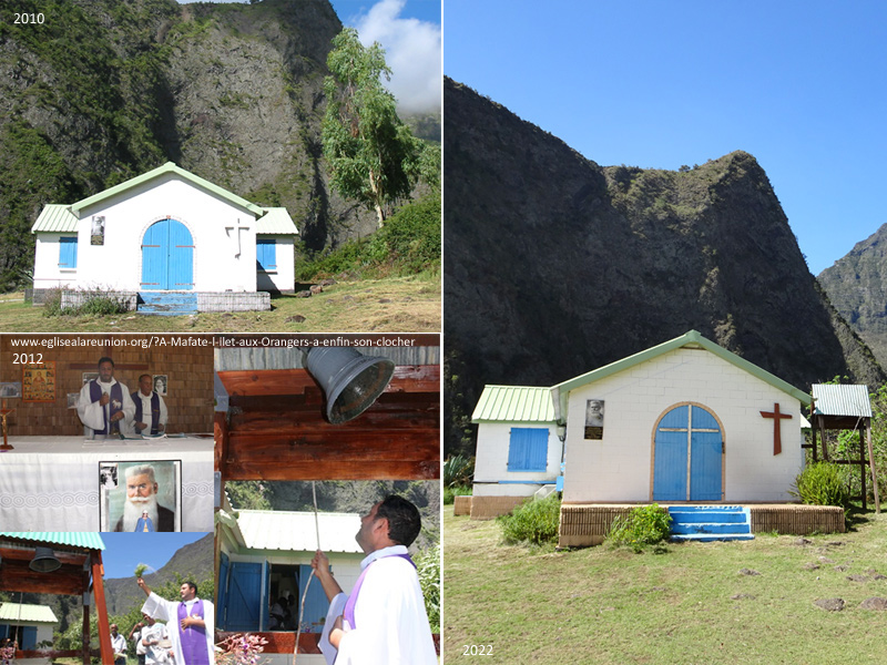 Jusqu'en 2012, la chapelle de l'îlet des Orangers était la seule du Cirque de Mafate à ne pas avoir de cloche. La chapelle dédiée au Bienheureux Père Brottier, servant également d'abri-anticyclonique est située en marge du Plateau l'Ecole. A l'heure de l'office, les anciens criaient très fort pour avertir du début de la messe. Un clocher a été bâti en 2012 par les anciens d'Auteuil. La cloche, baptisée Thérèse, a été offerte par la paroisse de Ste-Thérèse de l'Enfant-Jésus de Savannah.