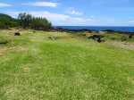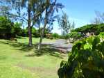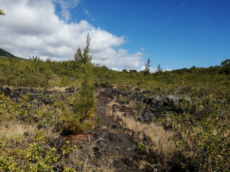 La randonnée débute à Bois Blanc, mais comme chaque fois dans une boucle, peut commencer n'importe où à condition que le sentier passe au plus près du parking, comme c'est le cas à Notre Dame des Laves par exemple. Cette sortie a été reconnue à partir du minuscule camping de Bois Blanc où trois beaux emplacements attendent les véhicules des randonneurs. Partir par le Chemin de la Source jusqu'à la RN2, à quelques pas du pont sur la Ravine de Bois Blanc. Après avoir rejoint la route de Sainte-Rose, partir à droite et marcher 800 m jusqu'au Chemin des Radiers, également appelé Chemin Touzet, en traversant des zones semi-urbaines. Cette route peut rebuter les habitués des sentiers. Pourtant, on marche sans circulation sur une vingtaine de lacets permettant des points de vue sur l'océan. Elle ondule on monte régulièrement sur trois kilomètres à travers les champs de canne à sucre ; il faut y penser en préparant la sortie pour les allergiques. Avant juillet la canne est très belles, mais haute (Photo 1) ; après la coupe les champs sont plus tristes mais les panoramas sur l'Océan plus imposants. On rencontre quelques touffes de grands bambous et des bois de jamrosats déjà envahis de goyaviers (Photo 2). Après 400 m de montée, on parvient au Piton Moka qu'on contourne longuement par le sud (Photo 3). Il reste encore trois km à parcourir presque à plat jusqu'à la Coulée de 1977 en passant de multiples radiers, infranchissables en cas de crues. Si certaines ravines sont des rigoles insignifiantes, d'autres sont des merveilles de natures mortes, profondes, creusées, glissantes et dangereuses en cas de crues (Photo 4). Les plus curieux tenteront une ou deux remontées en prenant garde à la mousse. Juste avant d'arriver à la coulée qui descend vers la mer, repérer, sur la gauche, les deux ou trois sentiers qui escaladent le talus et remontent longuement jusqu'aux cratères par une randonnée sportive. Trouver, 20 mètres avant la Ravine Mangassaye, une barrière rouge et blanche sur la droite de la route qui indique le début de la descente sur les coulées qui ont marqué les esprits en 1977, plus peut-être qu'en 2007 au Tremblet où seule la route a été recouverte. Inutile d'emporter le GPS ou se poser des questions : il suffit de descendre en empruntant les sentiers, pistes ou mélange des deux, zones arides mais plates. La trace ci-dessous est un exemple suivi lors de la sortie qui ne ressemblera pas à une autre en fonction de la curiosité de chacun. Si on est pressé, on va tout droit ; si on veut voir la canne, les panneaux photovoltaïques, la végétation diverse qui a envahi cette pente depuis 40 ans on effectuera des zigzags dans cette nature sauvage envahie de bois de remparts, filaos, fougères ou lichens (Photo 5). Les VTT, quant à eux, filent au plus rapide en laissant derrière eux des hectomètres de rubalise (Voir article ci-dessous pour un petit coup de gueule). Des traces de sentiers se remarquent dans les herbes jaunies (Photo 6). Quelques traces d'excavation montrent que la pierre issue de ces coulées peut servir, au moins comme remblais (Photo 7). Un grillage, entre la coulée et le Chemin Malécage, protège la ferme photovoltaïque qu'on peut longer sur une piste en pente douce (Photo 8). La région de Sainte-Rose est l'une des plus arrosées et on peut s'étonner de trouver autant de ces plaques (Photo 9). La canne qui dépasse les trois mètres dans les Hauts est beaucoup plus petite ici à cause de la pauvreté du sol (Photo 11). Plus bas, en regardant vers le Piton Balmann, on voit tourner au vent quelques pylônes de la ferme éolienne (Photo 13). Compter 30 minutes pour rejoindre par une dernière piste sableuse le terrain de sport et une large esplanade de pique-nique à Piton Sainte-Rose. Une sculpture installée en 2018, commémore les souffrances des habitants touchés par la catastrophe naturelle (Photo 15). Traverser la route et si besoin, marcher vers la gauche pour visiter l'église (Photo 16) avant de partir vers Saint-Philippe en marchant sur le bord gauche de la route. Après quelques cases, un panneau accueille les visiteurs dans une des plus belles aires de pique-nique de l'île (Photo 17). Les kiosques fleuris sont clairsemés dans une prairie à l'ombre de faux poivriers domestiqués et de filaos : tout ce qu'il faut pour se reposer à deux pas de la mer (Photo 18). Il est même l'heure d'une pause sous un des kiosques (Photo 19). Après avoir traversé cette aire et la petite route, suivre le chemin herbeux juste en face. Il passe sous de grands badamiers (Photo 20) avant de rejoindre la côte sur de larges parties couvertes d'herbe rase (Photo 21). Le sol, recouvert de lave n'a pas encore été totalement colonisé par la végétation (Photo 22). Se rapprocher d'un vestige de tunnel ne pouvant même pas abriter en cas de pluie (Photo 23). On retrouve avec plaisir le sentier menant à l'Anse des Cascades qui effectue beaucoup de petits virages ou dents de scie pour longer la côte rocheuse et déchiquetée. Le sentier est étroit, recouvert de sable volcanique ou de gratons coupants et bordé d'herbe s'il passe sous les filaos (Photo 24). Il se rapproche parfois assez près de la mer pour admirer les vagues, des gouffres ou de beaux bassins (Photo 25). Après le Quai de Sardine, ce cheminement rapide mène à des plantations et après une boucle vers la mer, bifurque sur la droite pour rejoindre la route de l'Anse des Cascades qui contourne le Gros Piton. Attention, ce sentier, moins fréquenté, est discret dans les herbes et peut se manquer sans GPS. Descendre vers la mer par la route et prendre le sentier qui débute à droite et monte tout d'abord assez fortement puis plus calmement jusqu'au Gros Piton (Photo 26). La visite à ce piton et ses explications sur l'utilisation qui en a été faite par la NASA a déjà été traitée dans une autre randonnée. Prendre donc à gauche avant la piste et longer