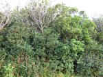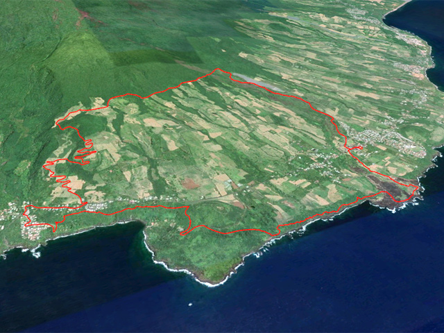 Cette longue boucle dans les cannes à sucre et le long du littoral emprunte plus de 6 kilomètres du Chemin Touzet en début de randonnée mais qui sont très agréables malgré les 400 mètres de montée. La route des Radiers porte bien son surnom car elle coupe des dizaines de ravines jusqu'à sa descente au pont de la Rivière de l'Est. Il y a presque autant de routes et de pistes que de ravines qui rejoignent la RN2 au Chemin Touzet. il est donc possible, en étudiant la carte la veille, de créer autant de circuits en boucle qu'on le désire pour ceux qui ne veulent pas emprunter les longs lacets au départ de Bois Blanc. La particularité de cette boucle est d'emprunter la quasi totalité de la Coulée de 1977 à l'origine du curieux phénomène de contournement de l'église de Piton Sainte-Rose et de l'agrandissement de l'ile à la Pointe Lacroix. Il ne faut pas s'attendre à de belles coulées conservées comme dans le Grand Brûle car celle-ci a été exploitée et on remarque partout des traces de chenilles ou d'excavations. On remarque également lors de cette sortie que l'indépendance énergétique n'est pas trop en danger quand on sait qu'on est à quelques hectomètres des réservoirs et de l'usine hydroélectrique de Sainte-Rose et qu'on côtoie les panneaux solaires et les éoliennes installés de part et d'autre du Chemin Malécage. La fin du circuit, le long du littoral, emprunte des itinéraires déjà décrits dans l'Est.