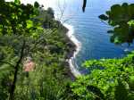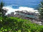 Petite entorse à la trace d’origine, je suis (très rapidement) passée par l’anse des Cascades, forcément bondée en ce dimanche de vacances, car je voulais prendre un verre de jus de fruits frais pressés (3 €, dans la petite cabane rouge, n’hésitez pas cela fait un bien fou) et poursuivre le long du rivage. Cela rallonge la rando mais permet de bénéficier de la brise rafraîchissante et de la côte découpée.