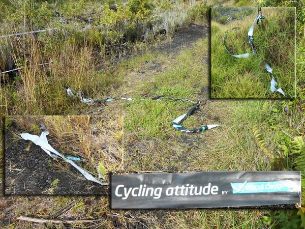 N.B. : La recette fonctionne aussi très bien avec, en 5 : enlever de temps en temps les rubalises détruites par les intempéries et tombées au sol !!!!!!! car elles mettront des années avant de disparaître.