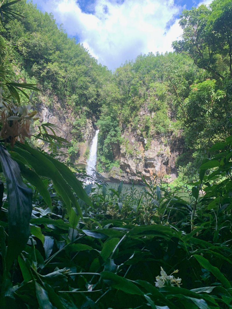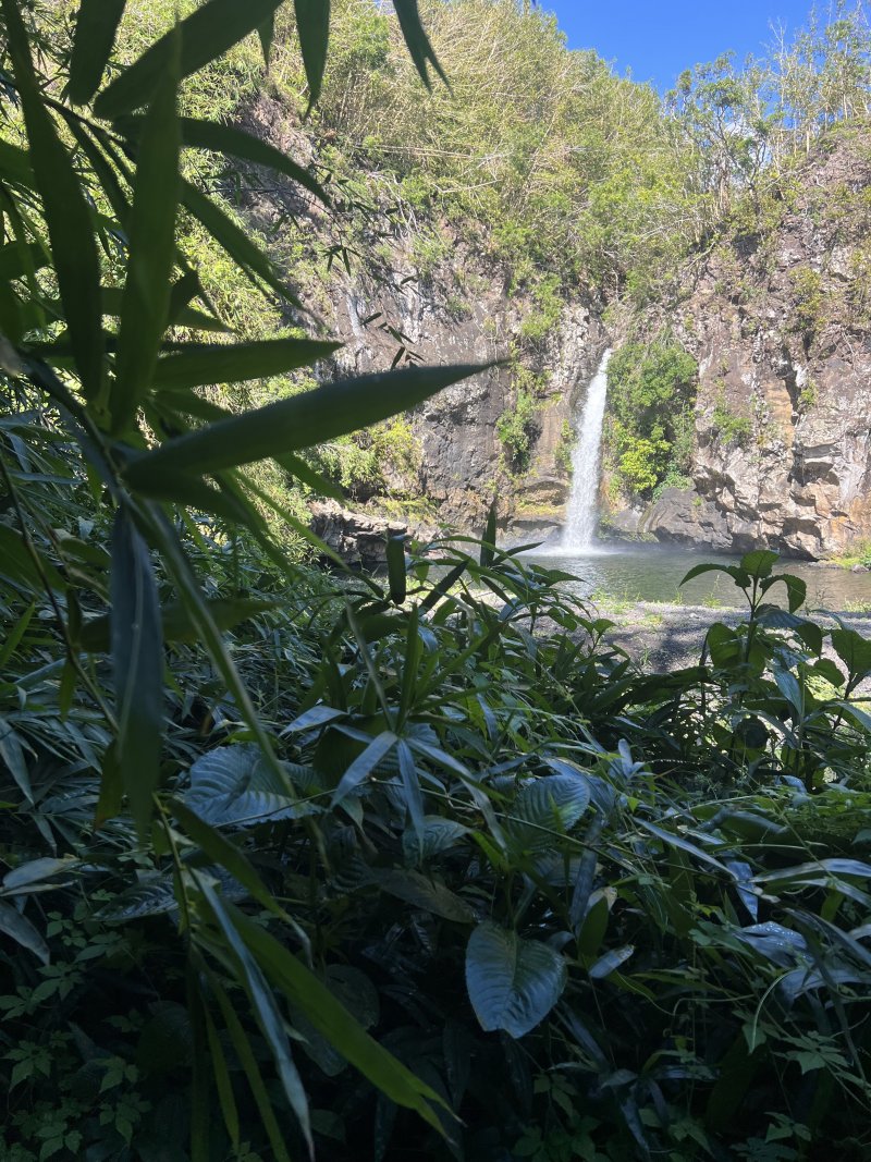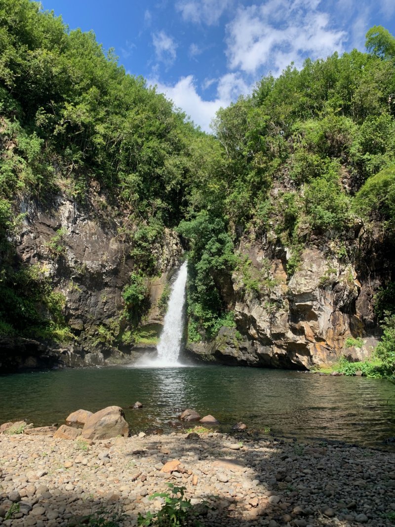 Il y a longtemps que cette belle chute d'eau était présente sur la page des cascades mais l'état du sentier montre qu'elle est très peu fréquentée, ce qui doit ravir les habitués du lieu qui peuvent y pique-niquer paisiblement. Les ordures en place prouvent une nouvelle fois que les boites et bouteilles vides pèsent beaucoup plus lourd après consommation et ne peuvent être rapportées au véhicule qu'elles risqueraient de salir !!! Inutile également de monter une expédition pour s'y rendre car le circuit est très court, s'effectue sans fatigue et doit se combiner avec d'autres sorties dans la région. Malgré le passage de Béjisa début 2014 qui a étêté de nombreux bambous, le lieu reste paradisiaque dans son écrin de verdure. La puissante cascade d'une dizaine de mètres est bruyante et le vaste bassin se prête très bien à la baignade. C'est un des rares endroits de l'île où les arbres, protégés du vent par le relief, ont atteint des hauteurs exceptionnelles pour la Réunion. C'est donc l'occasion de voir de plus près à quoi ressemblent les forêts de Mayotte ou des Seychelles toujours épargnées par les cyclones.