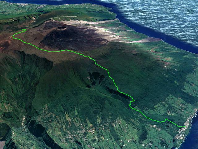 Julo17 : Comme toutes les randonnées proposées sur le site, il est possible de l'effectuer dans le sens qu'on désire. Comme le circuit est en descente constante, vous gagnez 1h30 pour rejoindre la mer depuis le volcan. Attention, à ce jour, l'enclos est fermé et il est impossible de monter au volcan. Suivez la liste des sentiers fermés si vous venez plus tard (voir en page d'accueil). Bon périple.