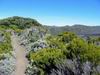 La randonnée débute à l'église de Basse Vallée qui dispose d'un arrêt de bus et d'un grand parking. Dans ce cas, on commence la montée par la route jusqu'à la Maison Forestière de Béloni (en vente) pour récupérer, un peu plus loin sur la droite, le sentier qui rejoint le Gîte de Basse Vallée. Cette première partie, sur un sentier caillouteux, traverse la forêt de bois de couleurs et ses plans de vanille installés un peu partout à l'ombre sur les arbustes (Photo 1). Pas de difficulté particulière pour cette portion à peine tortueuse qui traverse une belle forêt des bas assez peu envahie de plantes invasives (Photo 2). Ce sont surtout les fougères, humides le matin, qui bordent le sentier (Photo 3). Le sentier coupe par quatre fois l'étroite Route Forestière de Basse Vallée (Photo 4). Chaque fois le sentier reprend de l'autre côté. Certaines portions montent assez fortement mais, en règle générale, la pente est assez faible et régulière. Certaines parties sont assez plates sur les feuilles tombées d'une végétation touffue (Photo 5). D'autres, plus encombrées de racines et de pierres moussues, sont un peu plus difficiles (Photo 6). Repérer dans la montée les grottes ou anfractuosités particulières liées à ce type de paysage accidenté. On peu même descendre dans l'une d'elles sur la gauche du sentier. On se rapproche du Bras Plat qu'on suivra jusqu'au gîte. Le fond recouvert de mousse lui donne souvent un très bel aspect mais attention à la glissade facile. Les gros arbres sont rares mais on en rencontre tout de même ça et là ainsi que de grosses racines en bord de sentier (Photo 8). Quelques cultures sur la droite, principalement de vacoas (pandanus) puis la route pour la 5ème traversée marquent l'arrivée au gîte qu'on ne verra pas puisqu'on bifurque immédiatement en direction de la RF des Camphriers. Partir aussitôt à gauche sur un raccourci qui monte dans les goyaviers, les bois Noël (Ardisia crenata) et les losto café (Gaertnera vaginata) à l'odeur agréable pour rejoindre la Route Forestière des Camphriers, dans le dernier lacet. Bien profiter de cette partie qui monte lentement sous les camphriers odorants car les choses vont se compliquer à partir du nouveau kiosque. Visiter la grotte sur la gauche, cachée par la végétation avant de s'approcher du kiosque. Le sentier commence à cette aire de repos. Il grimpe dans les bois de moyenne altitude en offrant peu de panoramas. Il se rapproche de la Vallée Heureuse après 500 mètres mais les occasions de voir le fond sont également rares en raison de la végétation. C'est une succession de courtes montées suivies de courtes descentes, augmentant ainsi le dénivelé de la journée. Près d'un kilomètre plus loin, en s'approchant d'une petite ravine, il oblique sur la droite et contourne le Piton Ravine Basse Vallée sans qu'on le voit vraiment, surtout qu'il dépasse à peine de la forêt. Les jambes commencent à chauffer car 1200 m viennent d'être grimpés et il en reste autant à effectuer. On profite parfois de vues sur la région qui permettent de remarquer que la pente est faible mais qu'il reste encore beaucoup de montée avant de parvenir à la Fournaise (Photo 9). La végétation forestière diminue et se remplace doucement par les branles et les fougères arborescentes (Photo 10). Les montées et descentes successives ne diminuent pas pour autant. La pente moyenne non plus ne faiblit pas et on parvient, 600 m plus haut au Piton Rick, un cratère dépassant de la végétation de plus en plus rase (Photo 11). Il reste encore quelques touffes de branles et de hautes fougères (fausses osmondes) qui égayent le paysage. Puis on poursuit dans les branles verts qui diminuent encore de taille. Vu l'altitude, c'est beaucoup plus pratique pour admirer le paysage allant jusqu'à l'océan (Photo 13). Puis le sentier s'approche des zones de plus en plus désertiques des Puys Ramond (Photo 15). On frôle des cratères profonds difficiles d'accès (Photo 16 et 17) avant de tenter l'escalade d'autres cheminées dépassant du sol (Photo 18). Tous ces cratères s'escaladent mais il faut avoir du temps pour cela car il reste peu d'ascension mais la distance est encore longue jusqu'au gîte. On peut visiter cette région et pénétrer dans de nombreux tunnels en consultant cette randonnée. A 2000 m, la pente se calme enfin en quittant les puys (Photo 19). Le sentier, déjà balisé de blanc voit ses taches de peinture se multiplier, signe qu'on approche de l'Enclos Fouqué où le brouillard sévit une bonne partie de l'année (Photo 20). Le soulagement arrive enfin à 2200 m quand on s'approche des zones herbeuses du Piton de Bert (Photo 21). Suivre alors le bord de la caldeira et marcher presqu'à plat sur un sentier large et même une piste récemment construite. Prendre l'un ou l'autre et marcher facilement jusqu'au croisement avec le sentier redescendant au gîte par la rive droite de la Vallée Heureuse. On frôle un semblant de cratère plat qui peut parfois contenir de l'eau (Photo 22). Depuis le bord, on voit très bien le Pas de Bellecombe (Photo 23) qu'on peut rejoindre directement à partir du Piton Rouge en continuant de longer le rempart dominant l'Enclos Fouqué. Sur la droite, le Piton de la Fournaise en impose par sa taille (Photo 24). Si on reste sur le GR, on passe près d'un oratoire original fait de plaques de lave empilées puis à quelques mètres de la Caverne du Chisny. Le sol est plat et très agréable surtout dans ces paysages exceptionnels de la Plaine des Sables. On parvient à la route forestière du Volcan et on se rapproche tranquillement du Demi-Piton (Photo 26). On peut filer tout droit vers la Griffe du Diable ou prendre à droite la route en terre et ses nids de poules (Photo 27). Que l'on emprunte l'une ou l'autre, on parvient enfin au gîte pour un repos bien mérité. Le lendemain, c'est une demi-douzaine de circuits qui peuvent s'effectuer