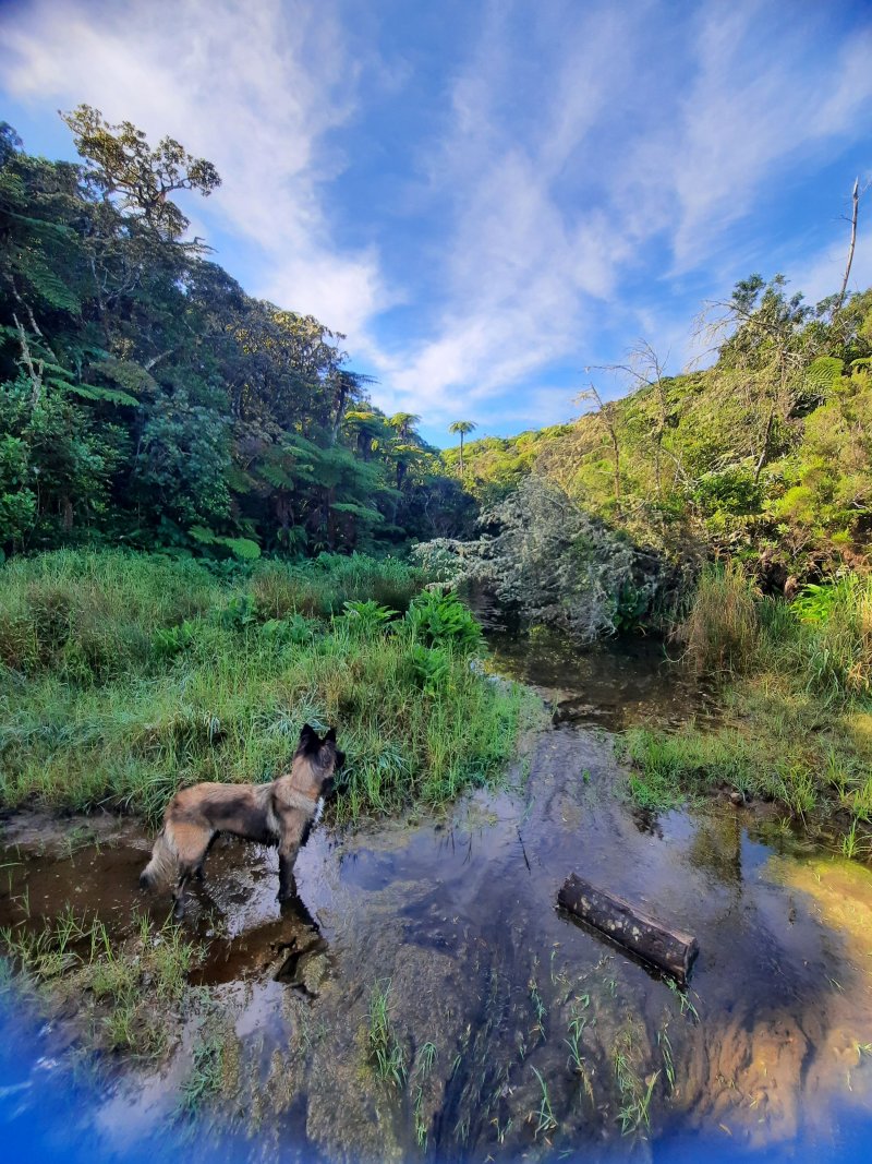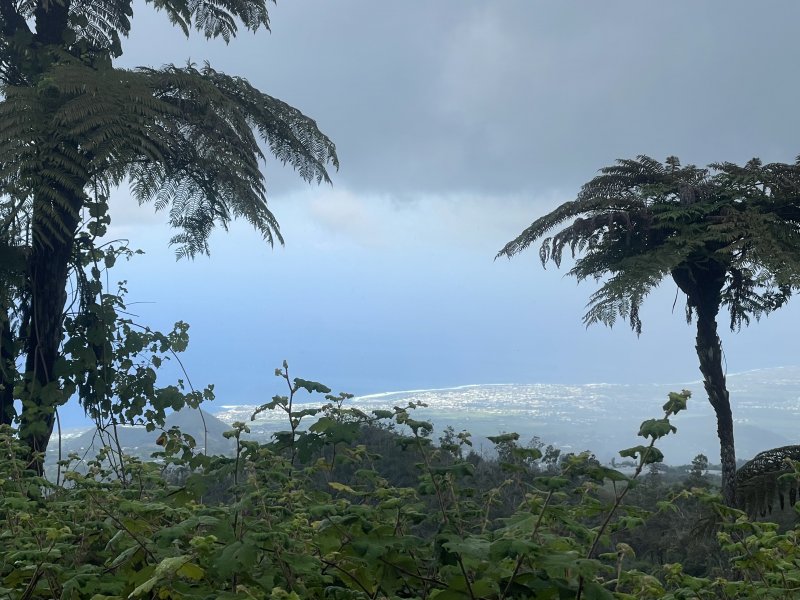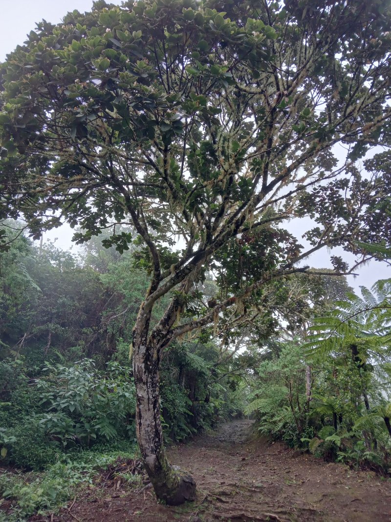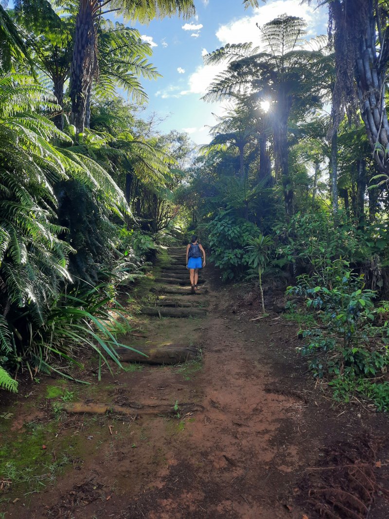 Voici une longue montée partant des hauts de Petite Île pour rejoindre le village de Notre Dame de la Paix. Ce circuit demande deux véhicules si on ne désire pas effectuer l'aller-retour. Il y a moins de 10 ans, un sentier partait du Relais de Petite Île et rejoignait Notre Dame de la Paix en traversant une belle forêt de bois de couleurs. Les pestes végétales, déjà nombreuses à l'époque, ont vite envahi le sous-bois, rendant impossible le circuit. C'est dommage car cette longue sortie permettait de mieux connaître les hauts boisés de Petite Île. Un contournement est utilisé depuis cette fermeture forcée et permet d'effectuer à peu près le même nombre de kilomètres en suivant quelques champs, traversant une belle forêt primaire, des prairies et en contemplant le fond de la Rivière des Remparts ou le Plateau de Grand Coude avant d'arriver au Sentier Botanique de Notre Dame de la paix. La sortie présente aussi l'avantage de rencontrer à peu près toute la végétation présente sur l'île. Quelques portions de route pour rallier Notre Dame de la Paix à partir de la fin la fin de la piste de la Forêt des Hauts de Montvert, viennent tout de même ralentir l'enthousiasme des marcheurs sans pourtant ôter celui des amoureux de la nature.