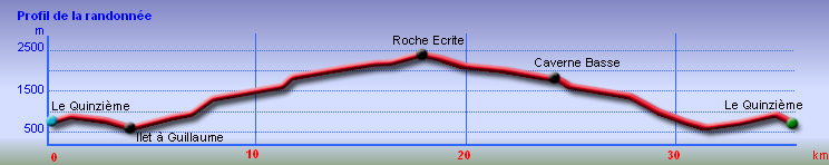 Parti depuis dos d'âne vers la Roche écrite, je suis ensuite redescendu sur l'ilet à Guillaume et terminé au Colorado (env 30km,1800D+ et 2100 en D-).