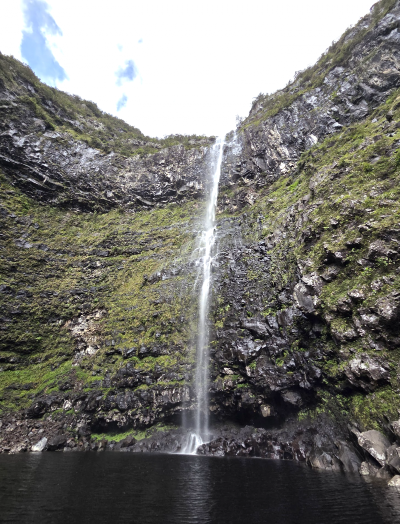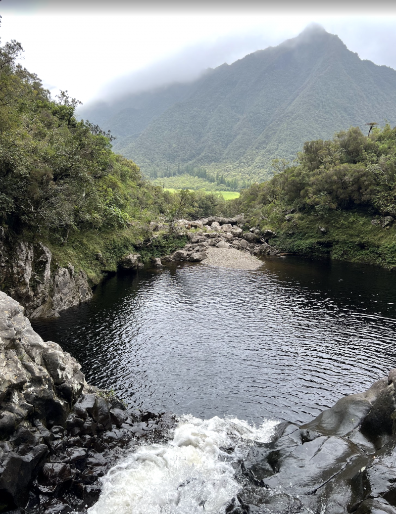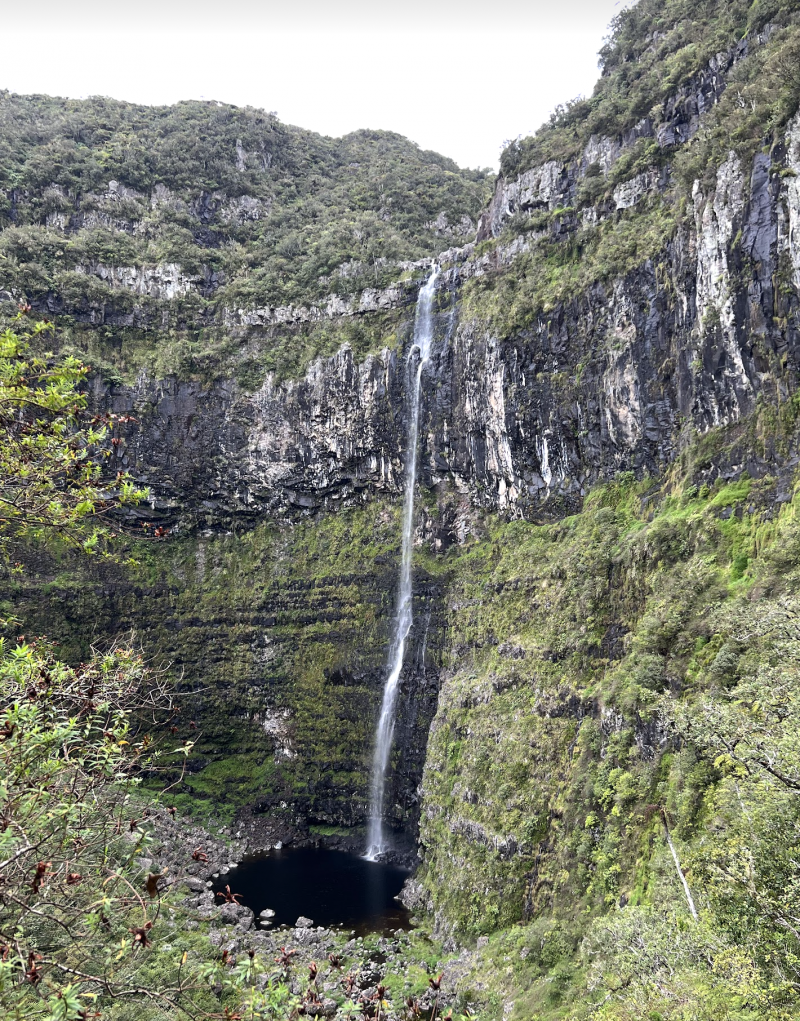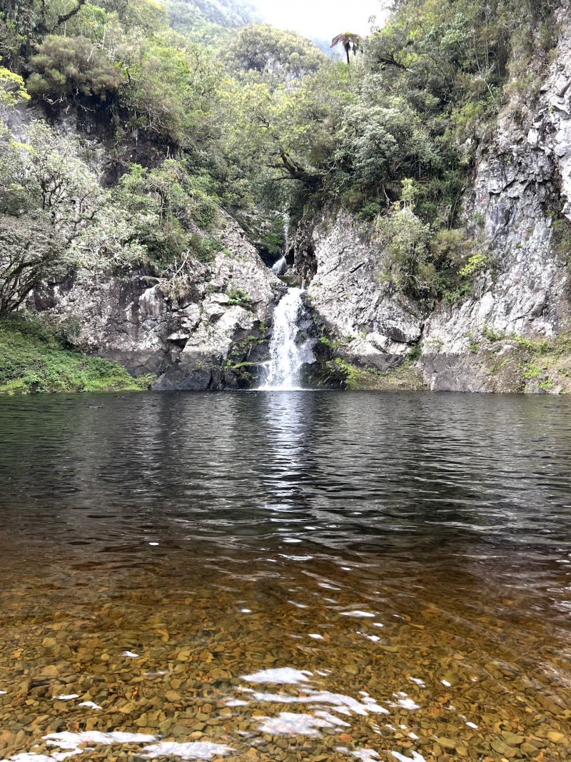 Nous avons effectué seulement une partie de cette randonnée pour aller voir les 2 premiers points d’intérêts : les cascades sauvages et son bassin en amont. Nous sommes ensuite descendus pour trouver la fourche, dans la rivière donc, mais nous avons un peu galéré à trouver le sentier pour remonter (heureusement que le GPS fonctionne bien à cet endroit). Nous avons commencé à remonter par le sentier très abrupt qui longe la canalisation (cassée) mais la pluie s’étant invitée et après quelques belles frayeurs de chute et glissades dans le lit de la rivière, nous avons décidé de rebrousser chemin et redescendre vers le bassin en aval, et reprendre par la route.