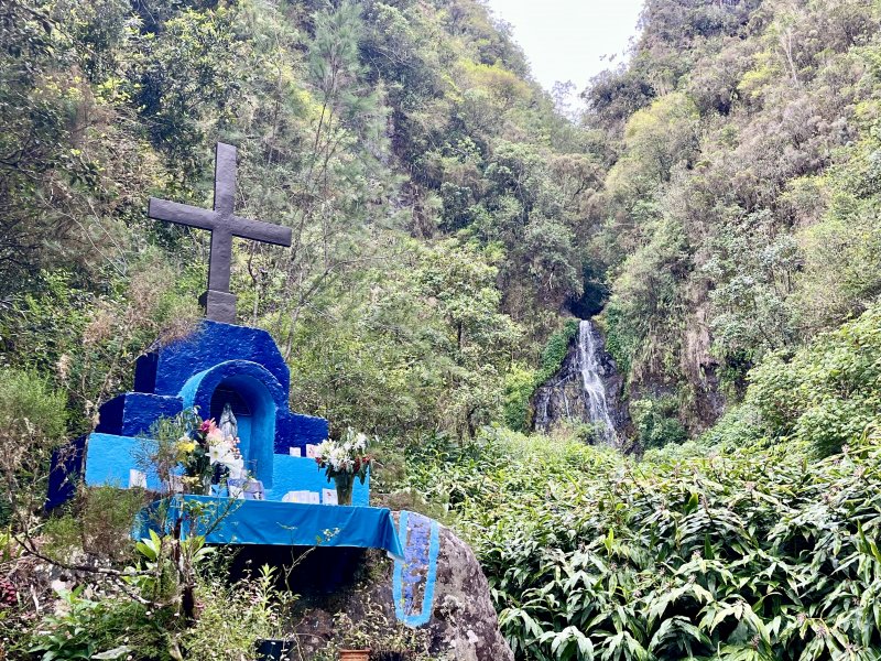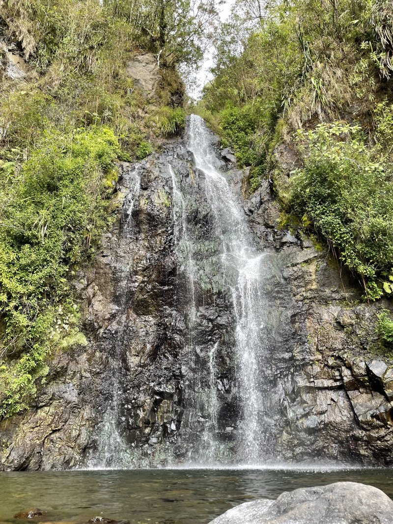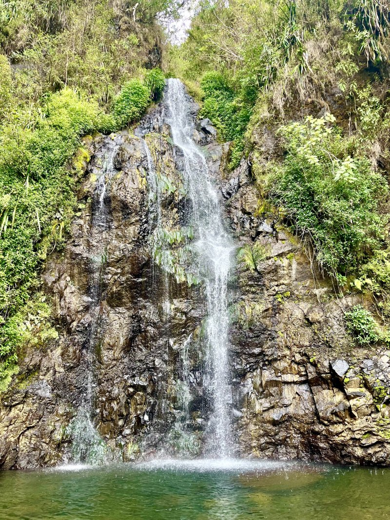 Belle balade. Effectivement, ça monte fort au début, mais ensuite le sentier est bien agréable. Nous avons trouvé facilement le passage dans les bambous (à gauche, avant l'oratoire), puis contourné le grillage par la droite pour prendre le petit sentier qui mène au pied de la cascade.