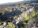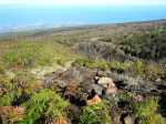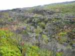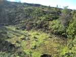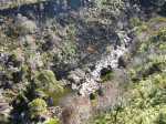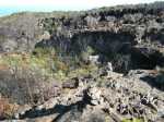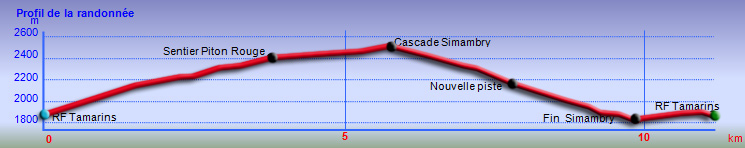 Cette belle randonnée hors sentiers officiels mériterait assurément une quatrième étoile si l'ONF décidait un jour d'y faire passer un sentier balisé. Il faut se contenter d'une cinquantaine de cairns lors de la montée le long de la Ravine des Colimaçons mais seulement une dizaine pour la descente du Fond Simambry. Malgré les incendies, les paysages sauvages restent originaux car différents de ceux habituellement rencontrés. La Ravine des Colimaçons, déjà empruntée en descente lors du tour du Piton Vera, comporte des canyons étroits et profonds où poussent des tamarins qui ont pu être épargnés par les flammes. Le Fond Simambry propose également des canyons étroits mais surtout d'innombrables retenues d'une eau très propre qui inciterait même à une petite baignade. Ces deux ravines ne sont pas dangereuses à la condition expresse de ne pas trop s'approcher des bords verticaux de leurs rives déchiquetées. Il est même fortement déconseillé d'y amener des enfants. Inutile de suivre à la lettre les cairns semés ça et là car il y a toujours quelque chose à voir à 10 ou 20 mètres de la trace : une pierre sculptée, une retenue d'eau, une grotte, un magnifique tamarin dans une crevasse ou un fond de rivière baignée d'eau. L'idéal est d'effectuer la boucle le lendemain d'une forte pluie car il subsistera d'office des petites chutes d'eau qui rendront le circuit encore plus attrayant. Des pistes ont été construites récemment afin de permettre des accès plus rapides à des zones éloignées en cas de nouveaux incendies. On peut suivre la piste qui longe le sentier du Piton Rouge à la Glacière mais on perd le charme de la nature. C'est également un vrai bonheur de voir la végétation reprendre ses droits. Les tamarins sortent ça et là, soit des souches moins brûlées ou des zones de lave recouvertes d'un peu de terre. Les fougères ont déjà bien poussé mais il vaut mieux voir de jeunes tamarins pour l'avenir de la région.