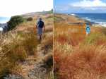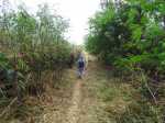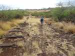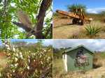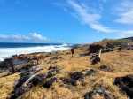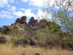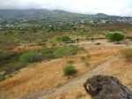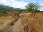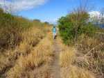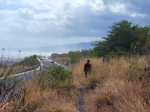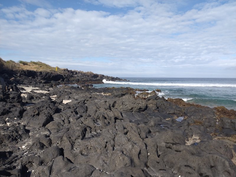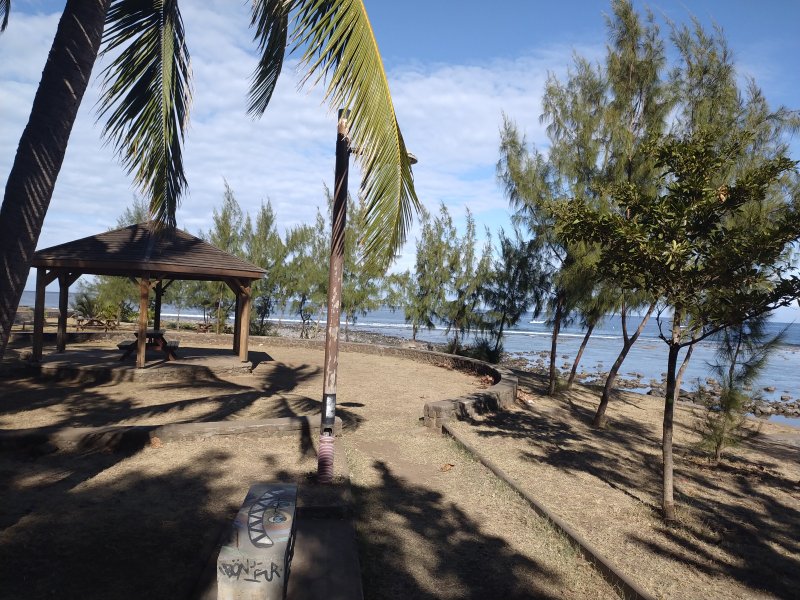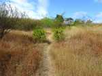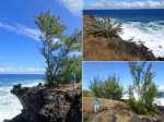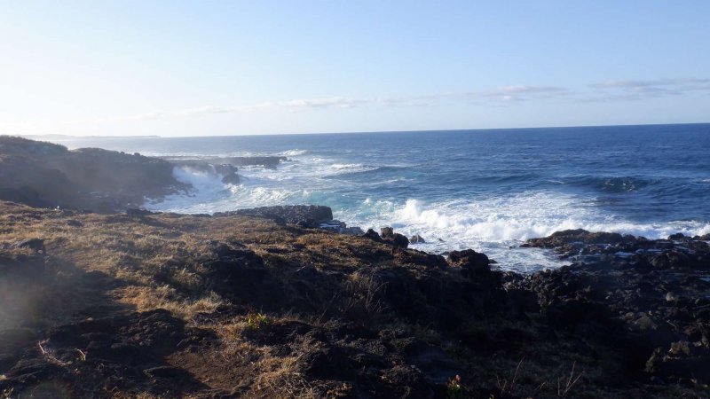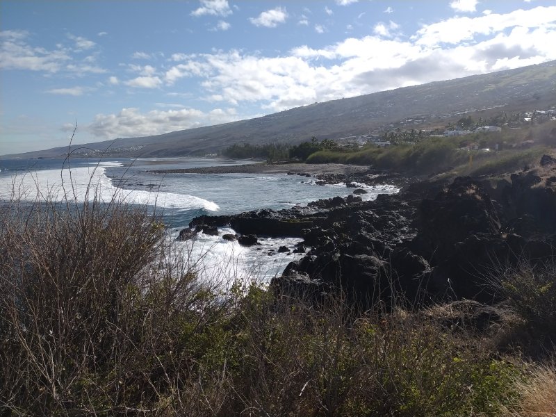 La randonnée débute à la première aire de pique-nique rencontrée au croisement vers le village de Bois de Nèfles Piton. Le stationnement est aisé au début de la route de la station d'épuration. Un petit sentier descend vers la route que l'on traverse en prenant garde à la circulation. Enjamber le muret et récupérer facilement le sentier de bord qui serpente parmi les herbes (Photo 1). Il passe un peu plus loin entre des abris sauvages et rustiques dont l'un abrite un semblant de temple tamoul (Photo 2). On parvient en quelques minutes au Cap Malizé, également nommé Eglise Requins. L'endroit est sauvage, découpé, dangereux et surmonté de tombes commémoratives. La mer s'y fracasse par forte houle. Par mer plus calme, on peut y trouver des grottes, fissures écumantes, falaises fragiles ou un gros souffleur relié à la mer par une grande arche (Photo 3). Le spectacle est assuré lorsque les vagues éclaboussent jusqu'aux touffes d'herbe, obligeant souvent à cacher les appareils photos qui se couvrent de sel (Photo 4). Poursuivre vers Saint-Leu en empruntant le sentier ou en marchant sur le basalte (Photo 5). Franchir une première fois le muret de protection de la route pour rejoindre rapidement le bord et parvenir au souffleur. Dépasser le souffleur dont la hauteur peut varier selon l'état de la mer (Photo 6). Très peu de végétation en raison de l'importance du sel projeté à longueur de temps (Photo 7). On rencontre plus loin deux importants souffleurs moins visités en raison de la distance les séparant du premier parking (Photo 8). La longue portion qui rejoint la Ravine du Portail est toujours aussi aisé en suivant l'étroit sentier dans les herbes sèches parfois assez hautes (Photo 9). Il passe au plus près de la route pour franchir les derniers mètres de la ravine mais il n'est pas nécessaire de franchir le muret. Les 200 mètres qui suivent sont si proches de la route qu'il est obligatoire de marcher sur le mur ou sur la piste cyclable jaune. C'est à ce moment là qu'il faut quitter la côte pour traverser à nouveau la route et se diriger vers la piste pénétrant dans les champs. Laisser celle de droite fermée par une chaine et entamer la jonction avec le Piton des Roches Tendres par un chemin en partie envahi de hautes herbes (Photo 10). La seule verdure rencontrée provient de quelques arbustes. Les zépinards (Acacia farnesiana) sont les plus nombreux. S'ils se repèrent bien à leurs pompons jaunes à la floraison, c'est surtout à leurs épines qu'on évite de se frotter le reste de l'année (Photo 11). On s'approche sans effort de la Pointe au Sel en longeant constamment la route sur ce sentier toujours facile à suivre (Photo 12). Il longe à un moment une tuyauterie provenant certainement de la station d'épuration rencontrée en début de boucle (Photo 13). Plusieurs pistes se terminent au début de la plaine qui s'étend au pied du Piton des Roches Tendres, couverte de savane et d'herbes sèches (Photo 14). Avec un minimum de sens de l'orientation, il est possible de se promener sur tous les itinéraires rencontrés. Cette fiche propose de remonter le canyon à sec d'une petite ravine sur un étroit sentier en rive gauche. Il s'élève en quelques lacets d'où l'on ne perd jamais de vue l'étroite vallée rocheuse (Photo 15). Cette grimpette qui sera la seule du parcours se termine au sommet du piton occupé par un amoncellement de roches (Photo 16). Les rochers, transformés en aire de jeux par les pique-niqueurs, offrent un promontoire pour observer la région du côté de Saint-Leu (Photo 17) ou en direction de la saline de la Pointe au Sel et de son musée (Photo 18). Côté montagne, on devine aisément les hangars du musée et l'aire de repos (Photo 19). Se rapprocher de la zone en quittant les roches et en marchant entre les touffes d'aloès ou cassiers (Photo 20). La région est très chaude mais les kiosques attirent cependant des familles en fin de semaine (Photo 21). Il est possible, à partir des kiosques, de terminer la boucle mais la région des Roches Tendres vaut une balade pour qui aime les savanes même si aucune faune sauvage ne viendra agrémenter la sortie. Prendre le sentier très large qui part vers le nord en direction des Quatre Robinets (Photo 22). Aux premières maisons, bifurquer à droite puis remonter vers le piton dans un environnement très sec sur un sentier de bonne qualité (Photo 24). Bifurquer à gauche à la rencontre du Chemin des Agrumes et passer devant d'anciens outils en train de rouiller laissés là comme décoration (Photo 25). Au croisement suivant, préférer le sentier le plus étroit remontant vers la réserve de récupération des eaux de la RN1 (Photo 26). La fin du parcours emprunte une interminable piste poussiéreuse entre RN1 et champs de cannes ou de légumes, ponctuée ça et là de graffitis humoristiques (Photo 27). Après avoir franchi la Ravine du Portail, obliquer à droite puis redescendre vers l'océan qu'on aperçoit au-dessus des cannes (Photo 28). La marche est facile jusqu'au village. A la route de Piton St-Leu, prendre à droite et redescendre en longeant la route bordée de palmiers jusqu'à l'aire de repos et au véhicule.