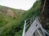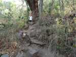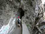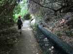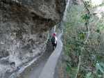 La randonnée débute 10 mètres en amont du café en empruntant un sentier marron (facilement reconnaissable à ses immondices !) près de la grille d'un terrain parfois ouvert mais interdit de passage aux piétons. On arrive très vite à deux départs de sentiers. Le mieux est de débuter la randonnée en longeant tout d'abord le canal supérieur en partant immédiatement à gauche. On marche le plus souvent dans le fond du canal à sec (Photo 1). S'il a de l'eau, ce qui arrive de moins en moins, marcher sur la margelle mais gare au vertige pour certains (Photo 2). On se retrouve très vite à l'entrée d'un premier tunnel (Photo 3), puis d'un second. Une lampe peut s’avérer utile mais non indispensable car il suffit de marcher en tâtant le plafond avant d'apercevoir très rapidement la lumière de l'autre côté. Plus loin, c'est une faille étroite qu'il faut emprunter (Photo 4). Un peu partout, le canal surplombe le vide et il faut prendre le temps d'étudier le travail impressionnant réalisé par les ouvriers de l'époque. Des arbres aux racines interminables qui tombent du haut de la falaise côtoient des lianes enchevêtrées (Photo 6). Repérer au passage les sentiers qui redescendent vers le canal inférieur et la Bassin des Aigrettes. D'autres sentiers, moins pratiqués et parfois dangereux, descendent vers la grande cascade, officiellement fermée de hautes grilles infranchissables. Le bruit de l'eau devient plus fort et on se retrouve en haut de la cascade des Aigrettes (Photo 12). S'il y a peu d'eau, on peut franchir la ravine et marcher sur les rochers pour dominer la chute et son bassin (Photo 13). Plus loin, quelques passages très rocheux imposent de faire un peu d'escalade (Photo 7). On arrive enfin au bassin Malheur entouré de hautes falaises friables (Photo 8) et dominé par la route des Tamarins. Ce bassin a beaucoup d'eau malgré le manque de cascade pour l'alimenter. Le courant provient en réalité d'une importante résurgence d'eau très claire (Photo 9) sous les rochers. Une fois le plongeon ou le bain effectué, reprendre le sentier en sens inverse et descendre à pic vers le canal inférieur pour rejoindre la ravine. Un sentier comportant de courts lacets et un sol très glissant permet de rejoindre en quelques minutes (Photo 11) un canal le plus souvent rempli d'un courant d'eau clair et frais (Photo 16). En partant sur la gauche et en remontant le courant du canal on parvient à une première grille, usée par les passages et plus loin, une seconde beaucoup plus difficile à franchir. Pourtant, en regardant à travers, on voit des gens qui se promènent ou se baignant !! Randopitons ne veut pas inciter les marcheurs à enfreindre les règles et chacun prendra ses responsabilités pour se rendre au pied de cette magnifique cascade (Photo 14). On peut voir la cascade depuis les grilles (Photo 15). La troisième chute du Bassin des Cormorans se rejoint en longeant le second canal (Photo 17). On domine le bassin qu'on devine au bruit de la chute avant de l'apercevoir à travers les branches (Photo 19). Descendre jusqu'à la touffe de bambous proche du bassin en passant près d'un "repaire" qui sent parfois une bonne odeur de fumée qui n'est pas encore légalisée, ce qui ne saurait tarder ! Il faut préciser que ce dernier bassin devient de moins en moins attrayant depuis quelques années en raison de son manque d'entretien, de la boue ou des cailloux glissants. Une fois cette troisième visite terminée, reprendre en sens inverse jusqu'au croisement du sentier qui remonte au point de départ (Photo 24). La pente, pourtant moyenne, fera vite oublier la fraîcheur des lieux !